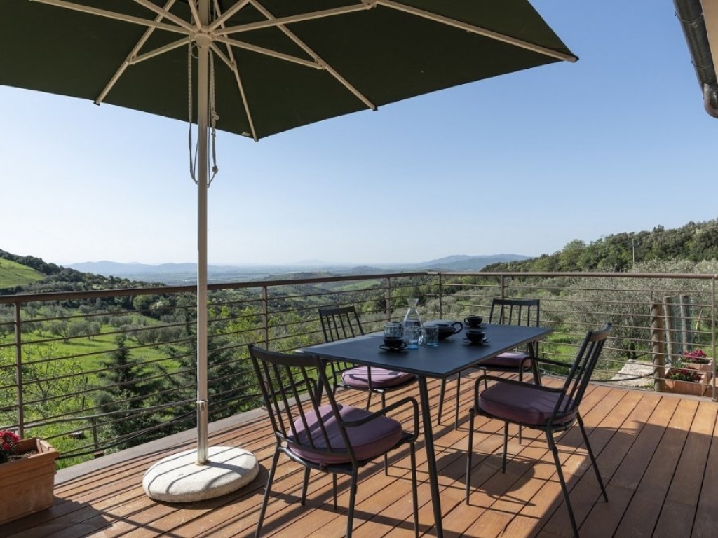 Panoramic terrace with table and chairs, private Jacuzzi with sun beds, outdoor shower, barbecue.