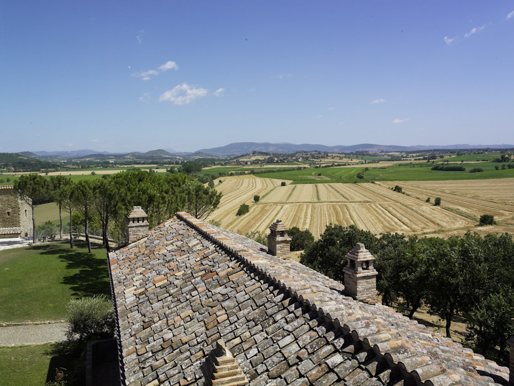 Historical complex protected by the Italian Ministry of Cultural Heritage, it has an ancient history that starts from 1100 even if recent studies could date its birth at least 500 years before. Positioned on a gentle hill, with a panoramic view that sweeps over the wide valley from which one sees Perugia, the castle is composed of 4 towers set in a widespread village of rare beauty. A careful restoration, respectful of the original characteristics, allows you to fully enjoy the beauty of the complex that has become today Historical Residence. To make guests live a unique and unforgettable experience, the castle offers different solutions between luxurious rooms and suites, all finely furnished while retaining the original features of a medieval castle, or comfortable and spacious holiday apartments all with terracotta floors, ceilings with oak and chestnut beams, trusses and tiles. For those who wish, inside the medieval halls, you can taste traditional dishes or simply a delicious breakfast with local products coming partly from the castle estate. The historic home is set in a large park with over 10,000 square meters of gardens in which the two splendid swimming pools are also set. The Castle represents a unique location, halfway between Rome and Florence, central to the main art cities such as Assisi, Perugia, Todi, Spoleto, Siena and Arezzo which can be reached in no time. The buildings of the Castle are surrounded by almost 10,000 square meters of gardens and lawns, of which about 1,600 are "private gardens" of the apartments on the ground floor. The rest of the gardens are at the complete disposal of guests who can choose the place they prefer to sit and relax. At the top of the hill there are two square-terraces with wonderful views of the surrounding valleys and woods and the many medieval villages and historic houses that can be seen from a distance. Perugia with its Etruscan walls and its main monasteries is visible 16 km away from one of the terraces, many private gardens and many apartment windows. The Sereni-Torricella forest, protected by the Ministry of Cultural Heritage (hereinafter MiBACT) and by the European Union, is visible 2.5 km away. The Castle has two swimming pools with a beautiful view of the valley. The largest, which faces north-west, is 16 meters long and 6 meters wide. The smaller one, measuring 8 meters by 4, faces north-east towards Perugia. Chlorine is not used to keep it clean, but oxygen. The Castello restaurant is called "Il Rifugio di San Costanzo", because the first bishop of Perugia, whose name was Costanzo, took refuge in Monticelli in 174 AD during a persecution of Christians under Marcus Aurelius (emperor from 160 to 180 AD). There are traces of S. Costanzo in the chapel of Monticelli which are illustrated elsewhere on this site. The restaurant is generally open only for dinner and only by reservation. Dinners are offered in the Gothic hall or outdoors if weather permits. The San Costanzo Refuge offers typical dinners of the Italian regions, in particular in Umbria, Tuscany and Lazio. Pasta is often home-made, vegetables are often organic and "zero kilometers" because they come from the large organic garden of the castle farm. The castle farm has about 4 hectares of arable land in the plain and about 4 hectares along the slopes of the hill. The organic garden in the plain measures about 16,300 square meters of which 5,000 are planted with berries (especially blackberries and raspberries). The rest of the land is cultivated with alfalfa or covered with fruit trees and olive trees.