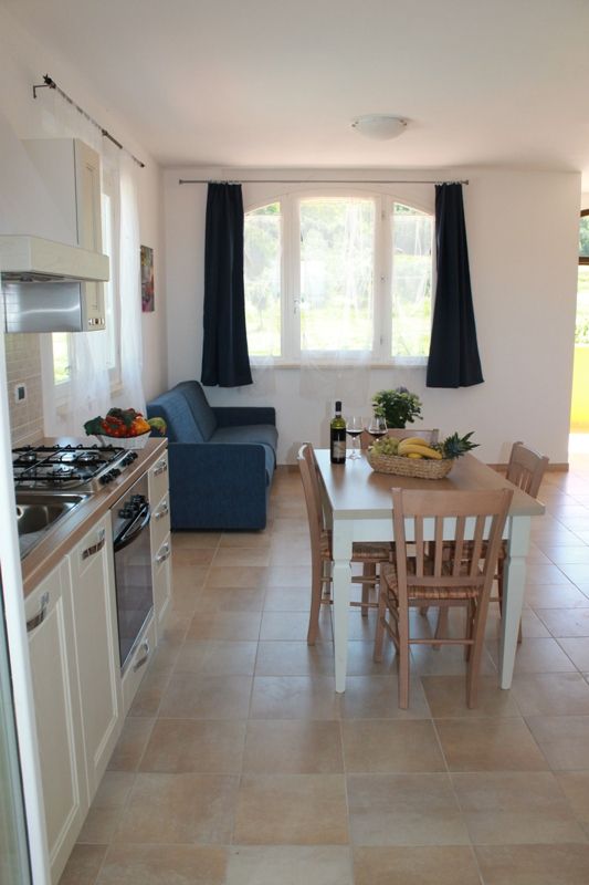 Three-rooms apartment on the ground floor 4 +2 sleeps, composed by a living room with kitchenette and double sofa bed, a double bedroom, a bedroom with two single beds that can be put together, a bathroom with shower, a large outdoor area with table and chairs garden.