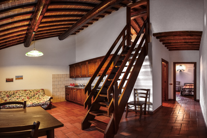 Ap.t n°9 bilo sleeps 2+3 living room with kitchenette and double sofa bed, the third bed can be put in the living room, loft or bedroom, a double bedroom, a bathroom with shower.