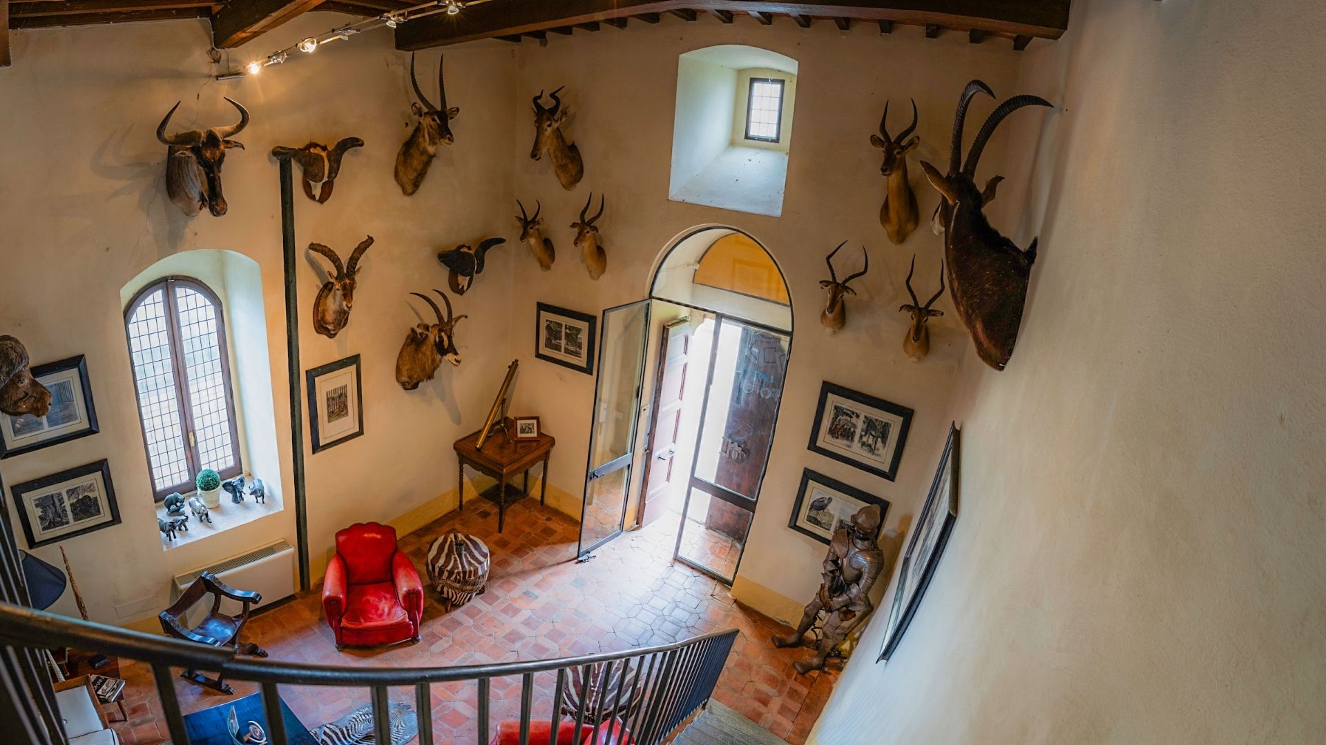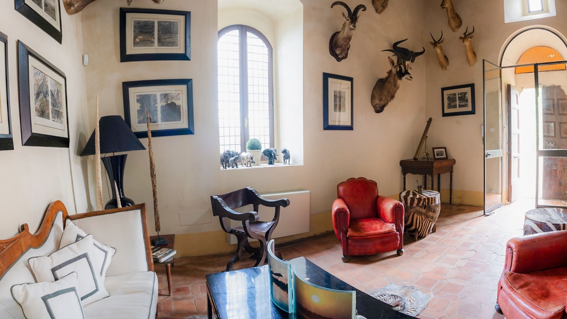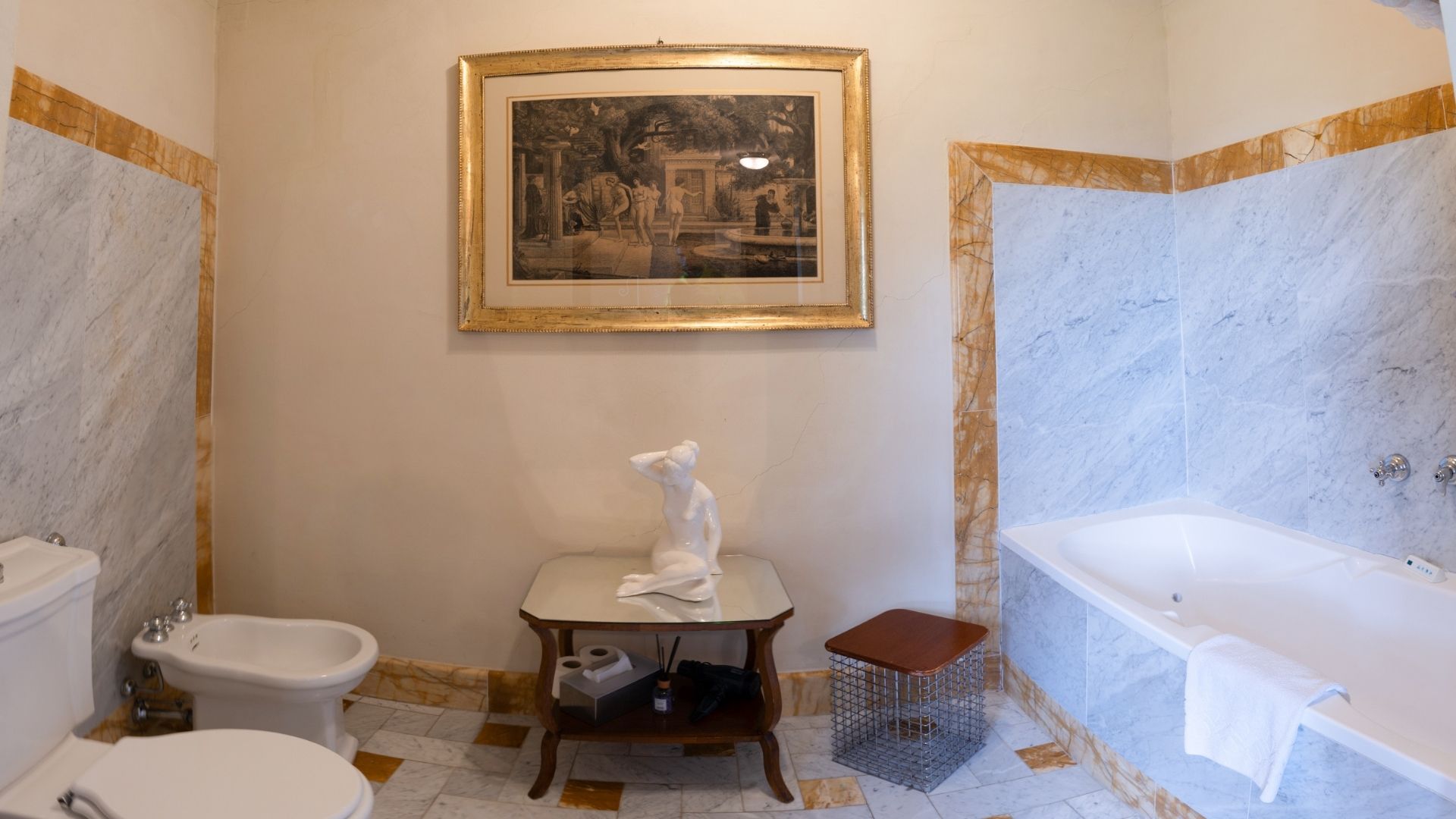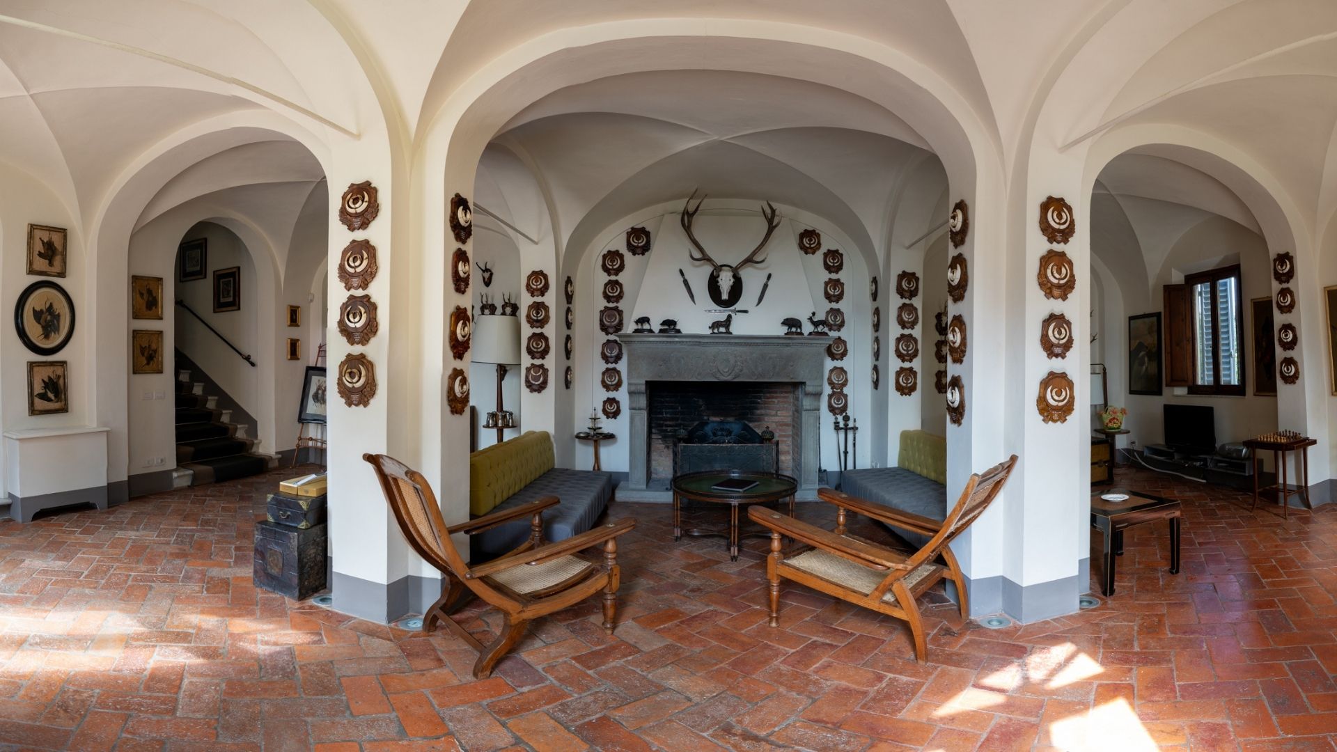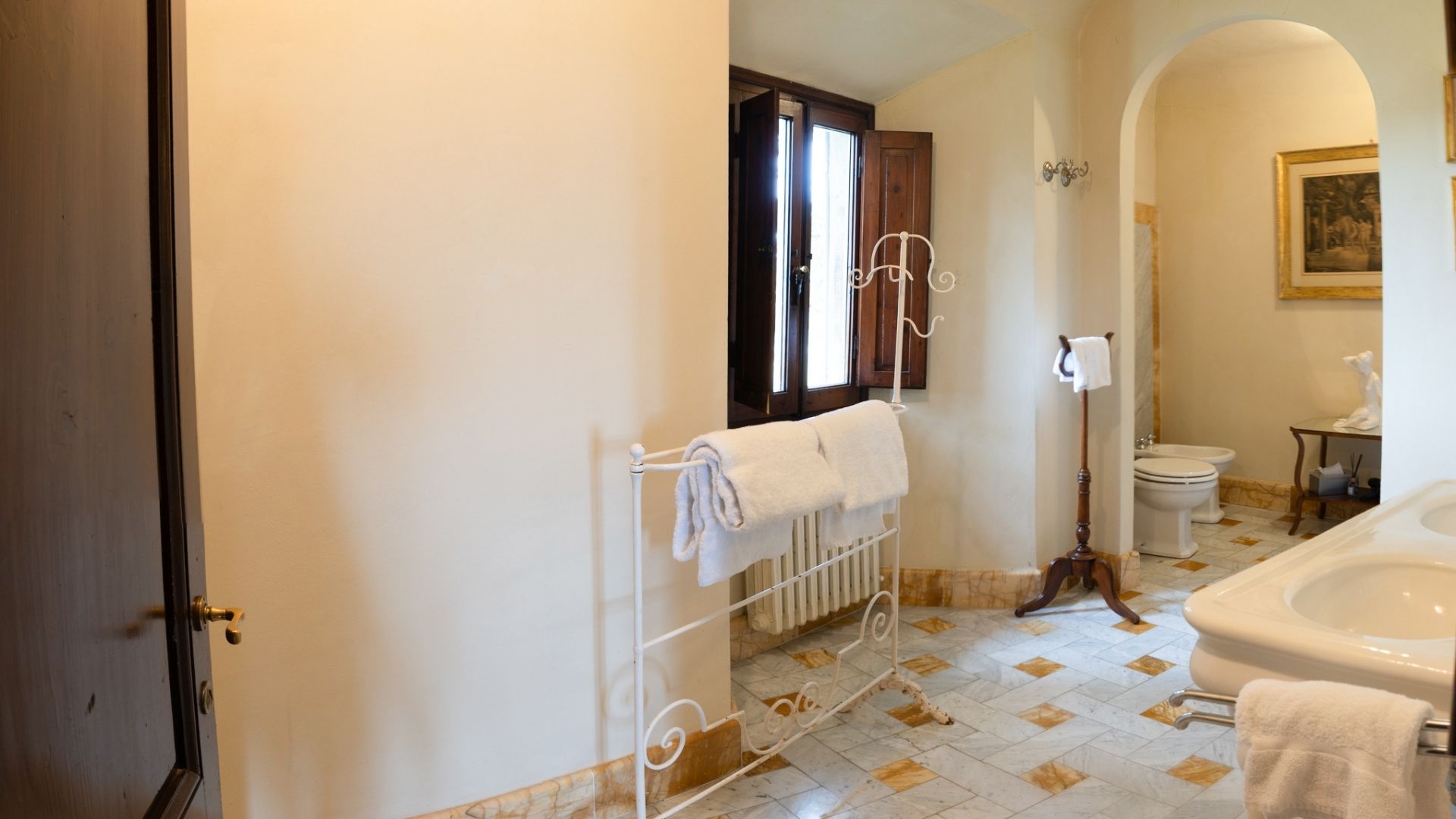 Independent villa for 12 people. On the ground floor, from the main entrance hall you can get to a vast and warm living room with a big fireplace. On the left, a marble staircase leads to the first floor. From the living room, a hallway leads to the rest of the villa. On the left, a big kitchen and completely furnished. Along the hallway, other than a guests bathroom, you can find a luxurious dining room with fireplace, a French window which lead to the courtyard. Going ahead, the Giallo living room with fireplace. On the left, the library with fireplace, a desk with computer, wifi and fax. On the left, the imperial bedroom Federico Barbarossa with ensuite bathroom and Jacuzzi. On the first floor, the marble staircase reach the first floor where you can get to four bedrooms through a long hallway: on the left, the double bedroom Gialla with ensuite bathroom, shower and Jacuzzi. On the left two tin bedrooms, the Azzurra and Rosa bedrooms, both with ensuite bathroom, shower and bath and shower and Jacuzzi. Going further, on the left there is the main double bedroom, Julia, with fireplace, balcony facing the courtyard, ensuite bathroom with shower and Jacuzzi. Going ahead, there is a room with ironing tools, wardrobes and a service staircase which joints Giallo living room. On the XII century tower the entrance is separated from the Villa. On the ground floor there is a living room, on the first floor a double bedroom with fireplace, bathroom. Terrace with a view. On the garden in front of the Villa is possible to view the typical Tuscan landscape: vineyards of the Fattoria and San Gimigano towers. A staircase leads to the inferior bastion through which you can get to the swimming pool (10x5m), surrounded by a garden and in the shade of a loggia. On the rear of it, a shower and a fridge. A lemon grove has been converted into a living room facing the garden, and the terrace offers a great view. A parasol outdoors in front of the lemon grove. There is also a deconsecrated chapel dating from 1210 dedicated to San Bartolomeo and refurbished in the ‘700, the crypt is from the XIII century. There is also a “torchio” for grapes squeezing from 1743 and a wine colletiong available for guests.
