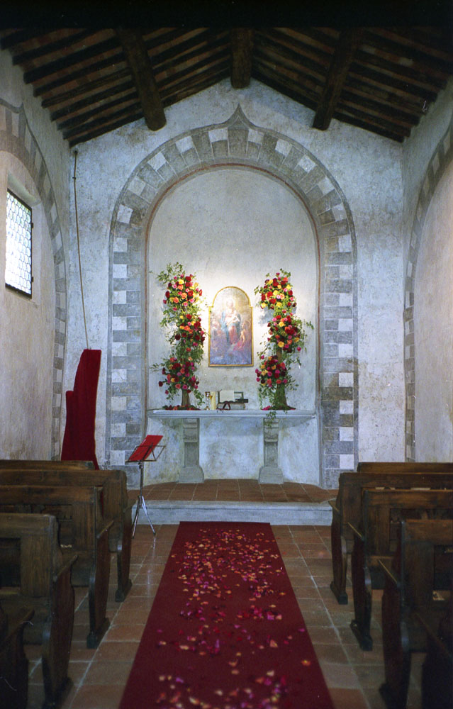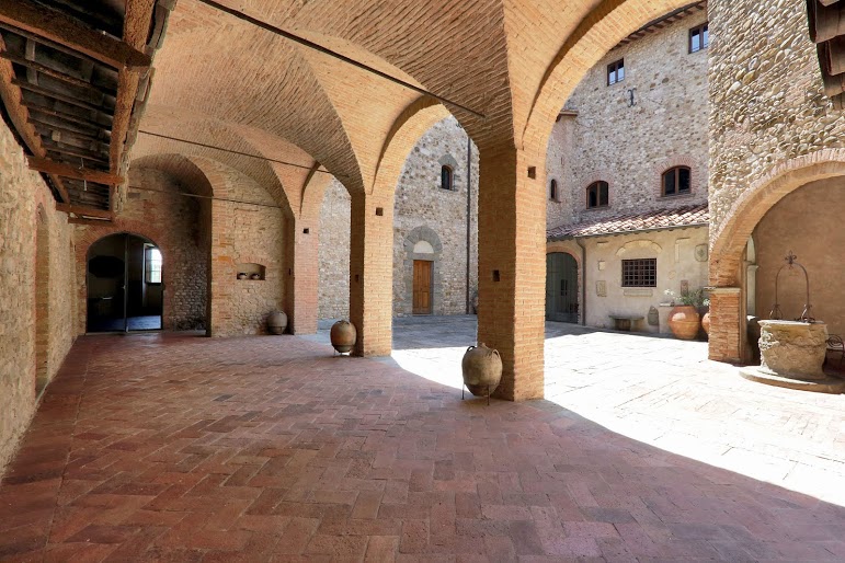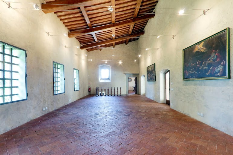 The ground floor is perfect for welcoming guests of ceremonies and events thanks to the presence of large halls. The Machiavelli Room can accommodate up to 80 people and together with the other halls it has a capacity of more than 140 people. In addition, the outer cloister is a perfect area for open-air events and can accommodate up to 150 people. The Castle also includes an officiating church.