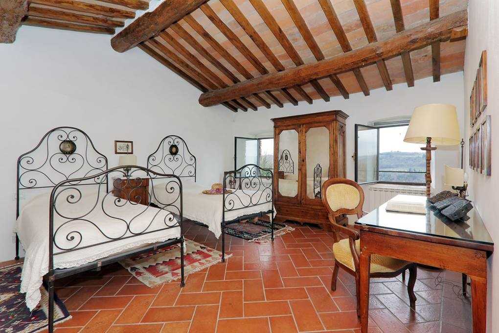Villa Il Poggio (6 + 2 beds - 300 sqm) on the first floor with living room with fireplace and double sofa bed and television, toilet, a bathroom with shower and washing machine, kitchen (dishwasher), dining room (for 8 People sitting), an outdoor loggia furnished with table and chairs. On the second floor there are two double bedrooms, one twin bedroom, two bathrooms with bathtub and a sitting room. It has a shared swimming pool (5x10 meters), gym and park.
