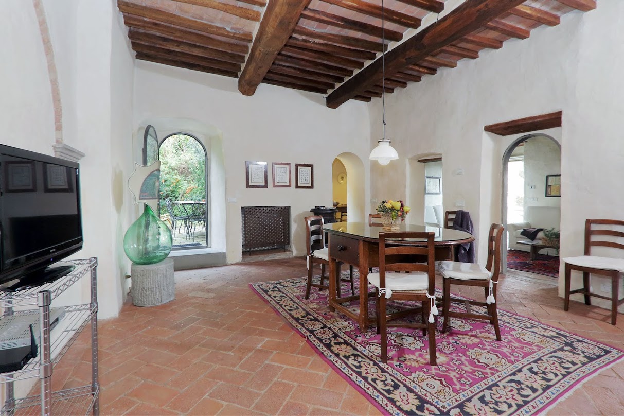 La Canonica (4 +2 beds - 99 sqm) with garden with table and chairs, living room with fireplace and double sofa bed, dining room, kitchen (dishwasher), double bedroom with bathroom with shower, one double bedroom And a bathroom with hot tub.