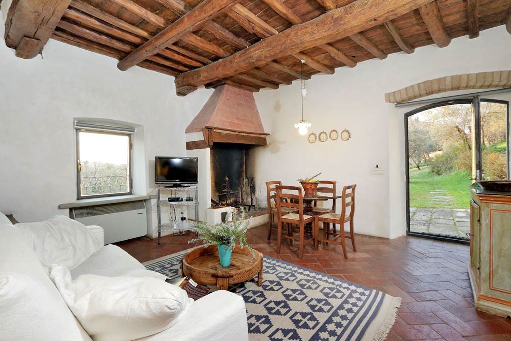 Poggiosanto (4 + 2 Beds - 79 sqm) with terrace with table and chairs, kitchen (dishwasher), living room with fireplace and double sofa bed, two double bedrooms with two bathrooms with Jacuzzi.