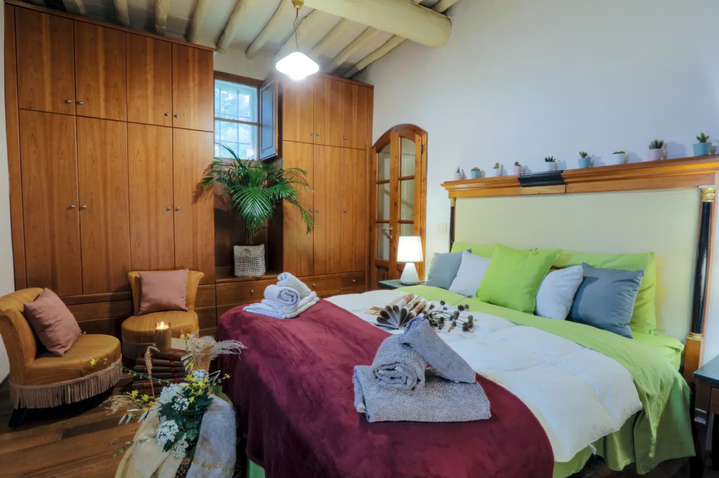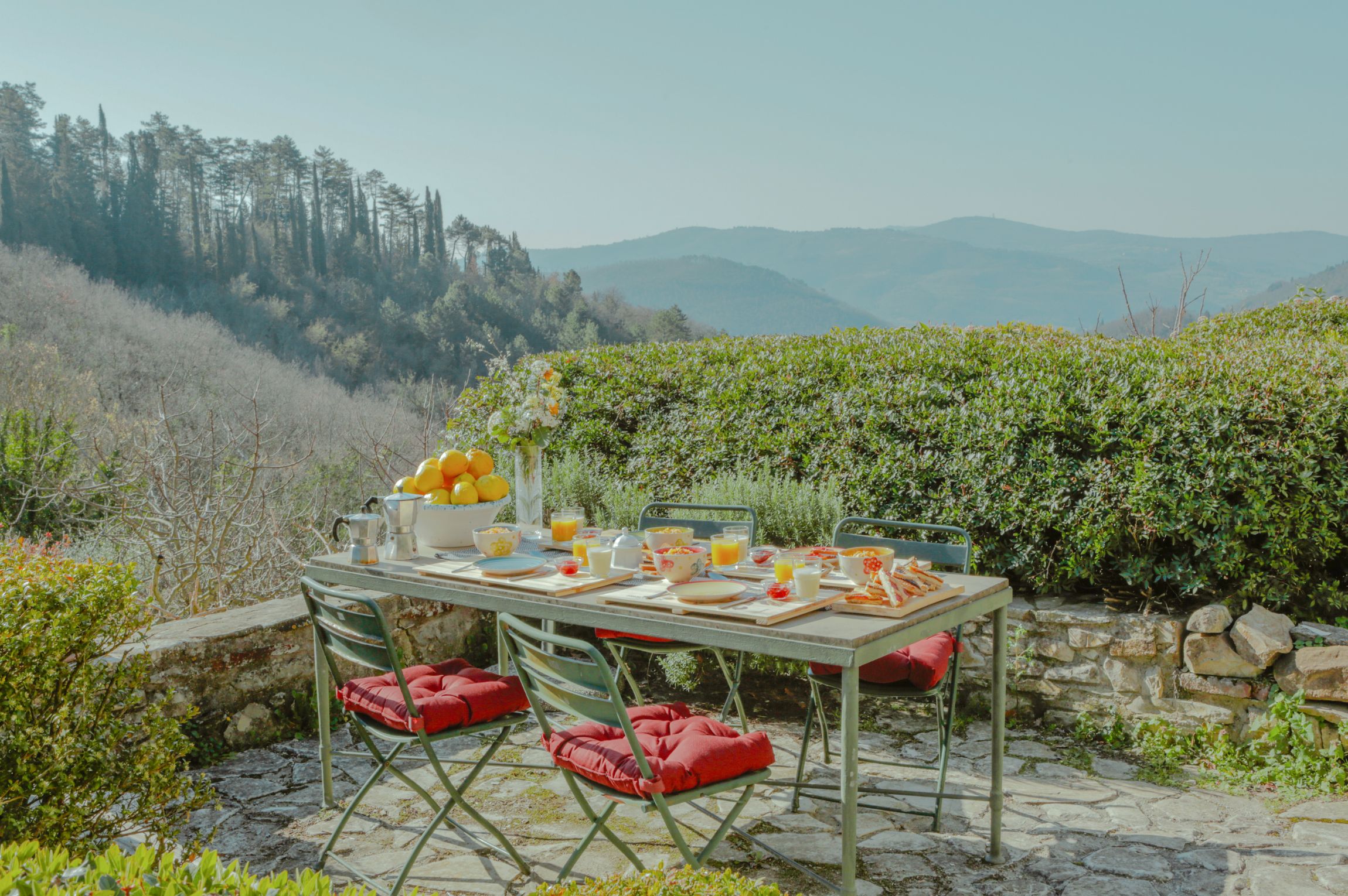 The interior of Castello Merlato retains the charm of a historic residence, with two distinct units characterized by refined environments and furnishings that combine classic elegance with modern comfort. Each apartment is furnished with period furniture and details that recall the Tuscan tradition, while offering all the modern amenities necessary for a comfortable stay. The apartments feature a spacious living room with comfortable sofas and a dining area. Special attention has been given to lighting to create warm and functional spaces. Each unit has a fully equipped kitchen with cookware, oven, fridge, stove, and dishwasher. The spaces are designed to provide guests with the opportunity to prepare their own meals independently, while maintaining comfort and functionality. The rooms, spacious and bright, are equipped with double or single beds, luxurious fabrics, and large windows offering spectacular views of the gardens or surrounding landscapes. The bathrooms, elegantly furnished, are complete with a shower or bathtub and high-quality accessories, ensuring an experience of absolute comfort.