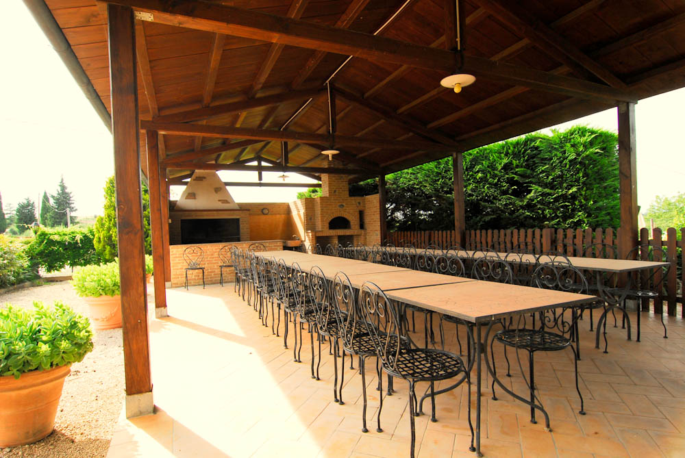 In the Dolce Collina 2 unit there is the common room with professional kitchen, with independent access from the outside and gazebo with pizza oven and barbecue.