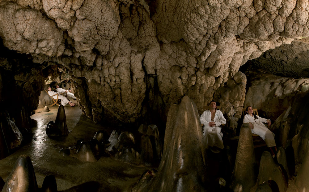 Large park, outdoor thermal pool with scenic waterfall and whirlpools, thermal grotto, mud baths, ozonized baths in thermal water, inhalation therapies, diet, massage therapy, oriental disciplines, facial and body treatments, beauty service, special treatments, aesthetic medicine, cosmetic line, wellness programs, oriental itineraries, Russian and Roman baths, Turkish hammams, electric baths.