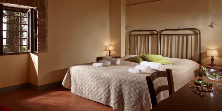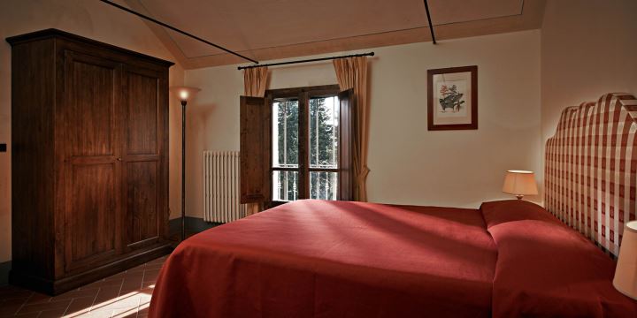 The apartments at La Dimora del Bosco offer a comfortable stay in a warm and refined atmosphere, where rustic elegance blends perfectly with the surrounding nature. Carefully furnished in Tuscan style, with exposed wooden beams and traditional details, they ensure a cozy and relaxing environment.