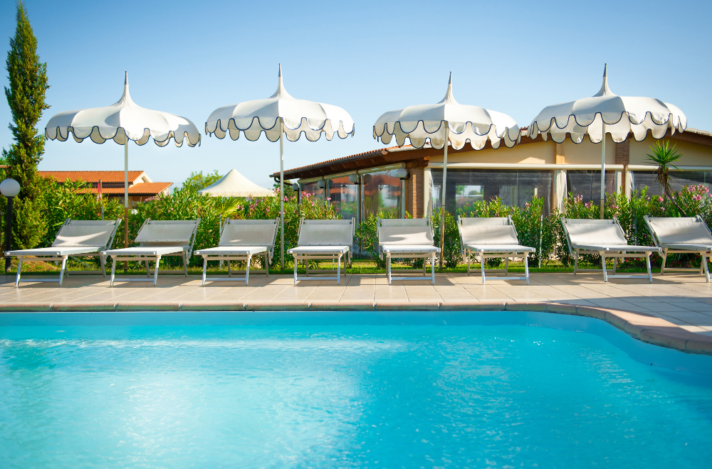 Swimming pools, parking, tennis court, volleyball court, bowling alley, giant checkers and chess, table tennis, table football, picnic area, playground for children, pets allowed, wellness area with massages, body treatments / face and wellness packages.