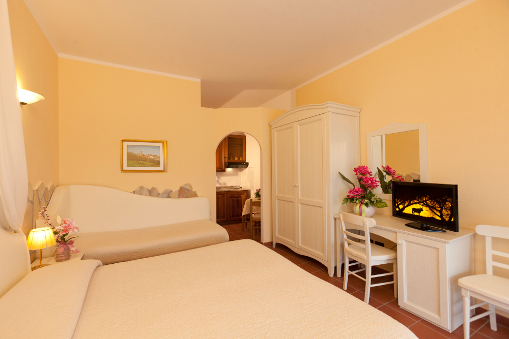 Zodiaco Studio 25 sq.m. around double and single bed, air conditioning with individual temperature control, bathroom with Jacuzzi, hairdryer, satellite TVC, kitchenette equipped with cm. 175, fridge, microwave oven, safe, porch with table and garden with hammock and barbecue.