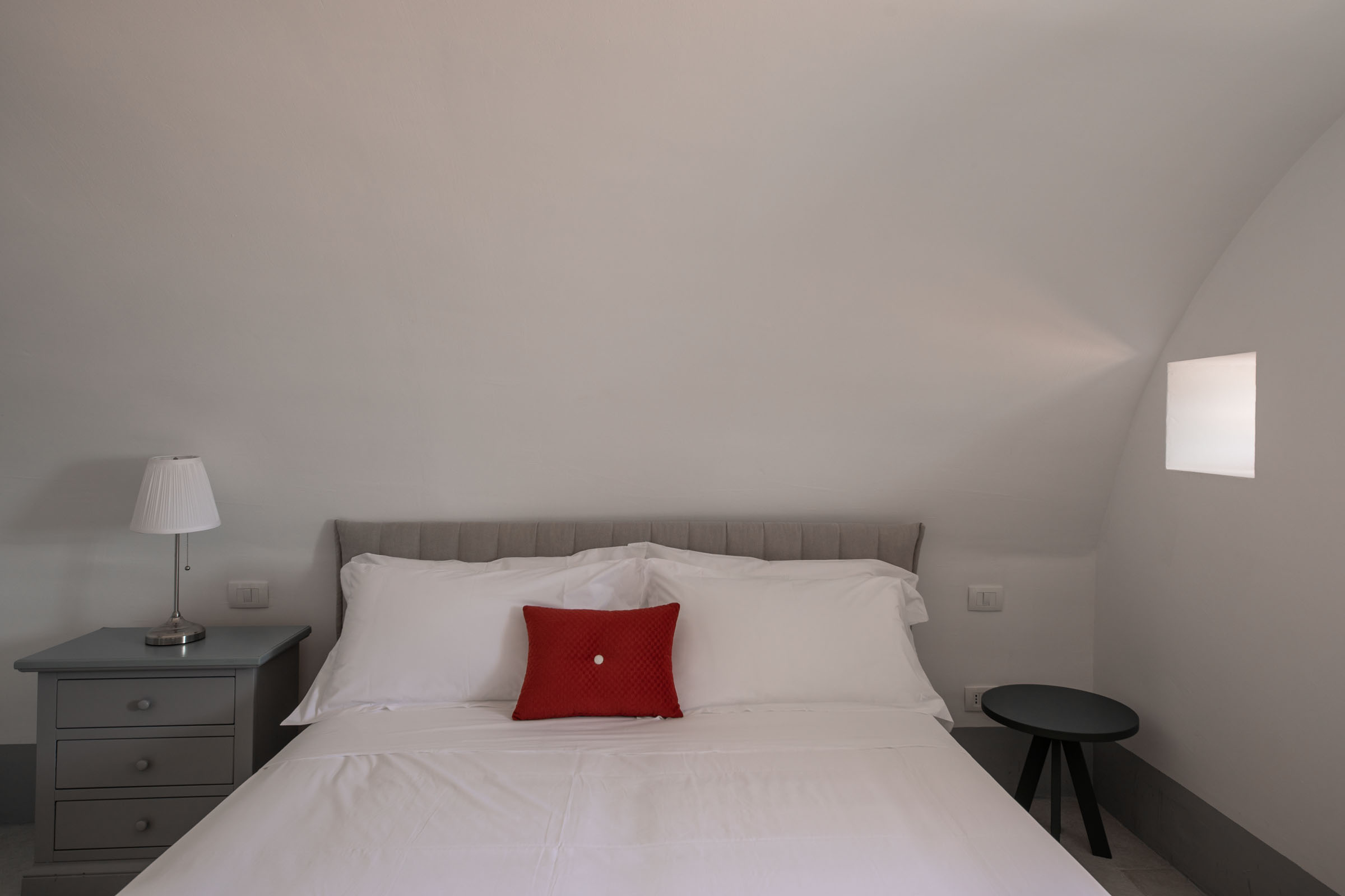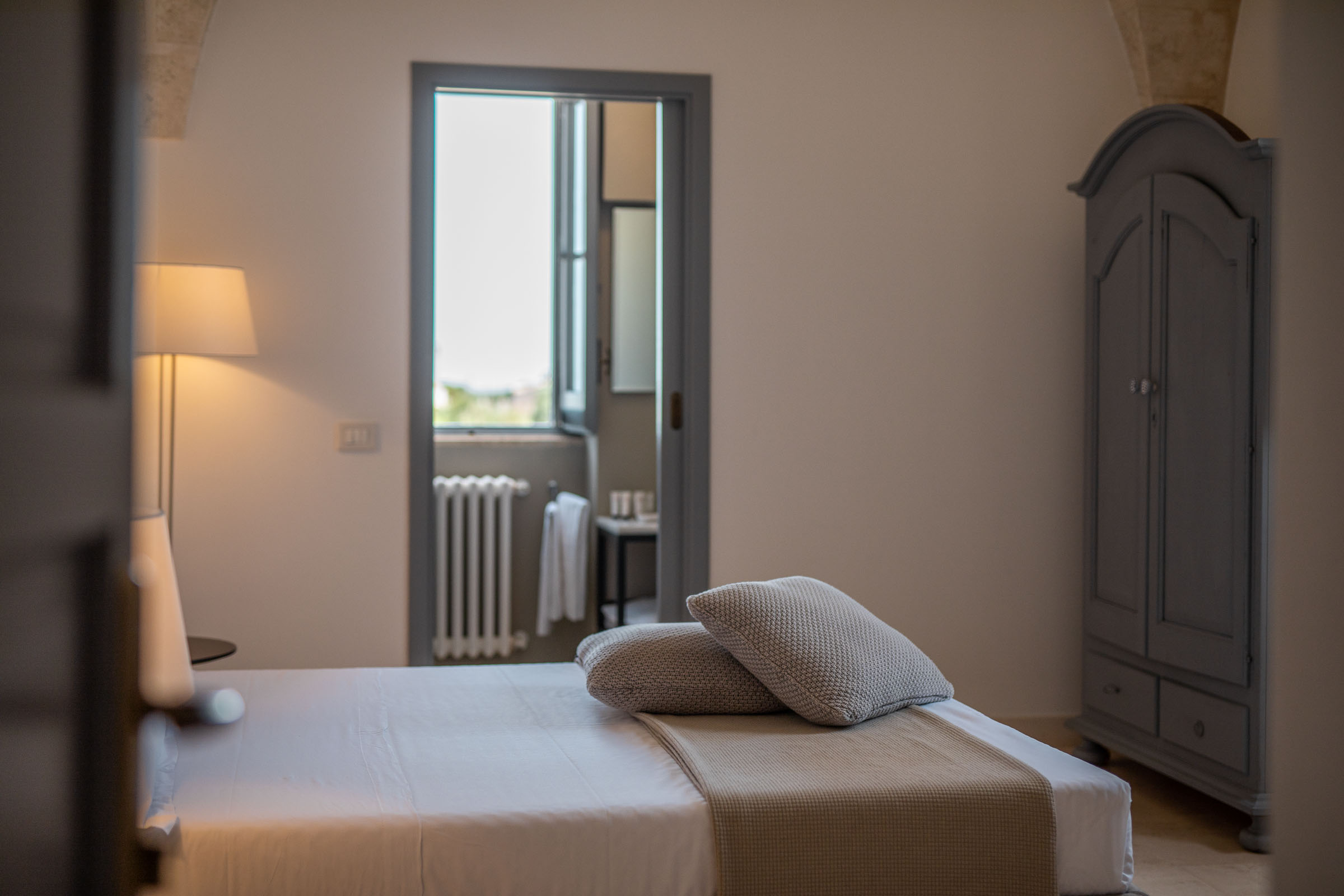 The Masseria has 14 bedrooms, all located in the central building while offering privacy, soundproofing, and ample space. Rooms are hypoallergenic featuring high-quality mattresses and pillows, as well as skin-friendly bedding, towels and linen. Each room offers a different view: garden view, orchard, countryside, and/or sea views.
