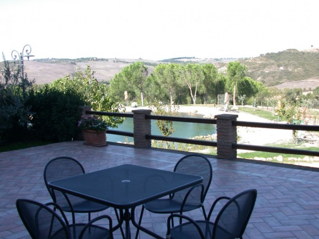 Glicine apartment sleeps 4 + 2 with living room with kitchenette and double sofa bed, two suites with bathroom with shower and Jacuzzi, panoramic terrace on the Biolago and the Crete Senesi.