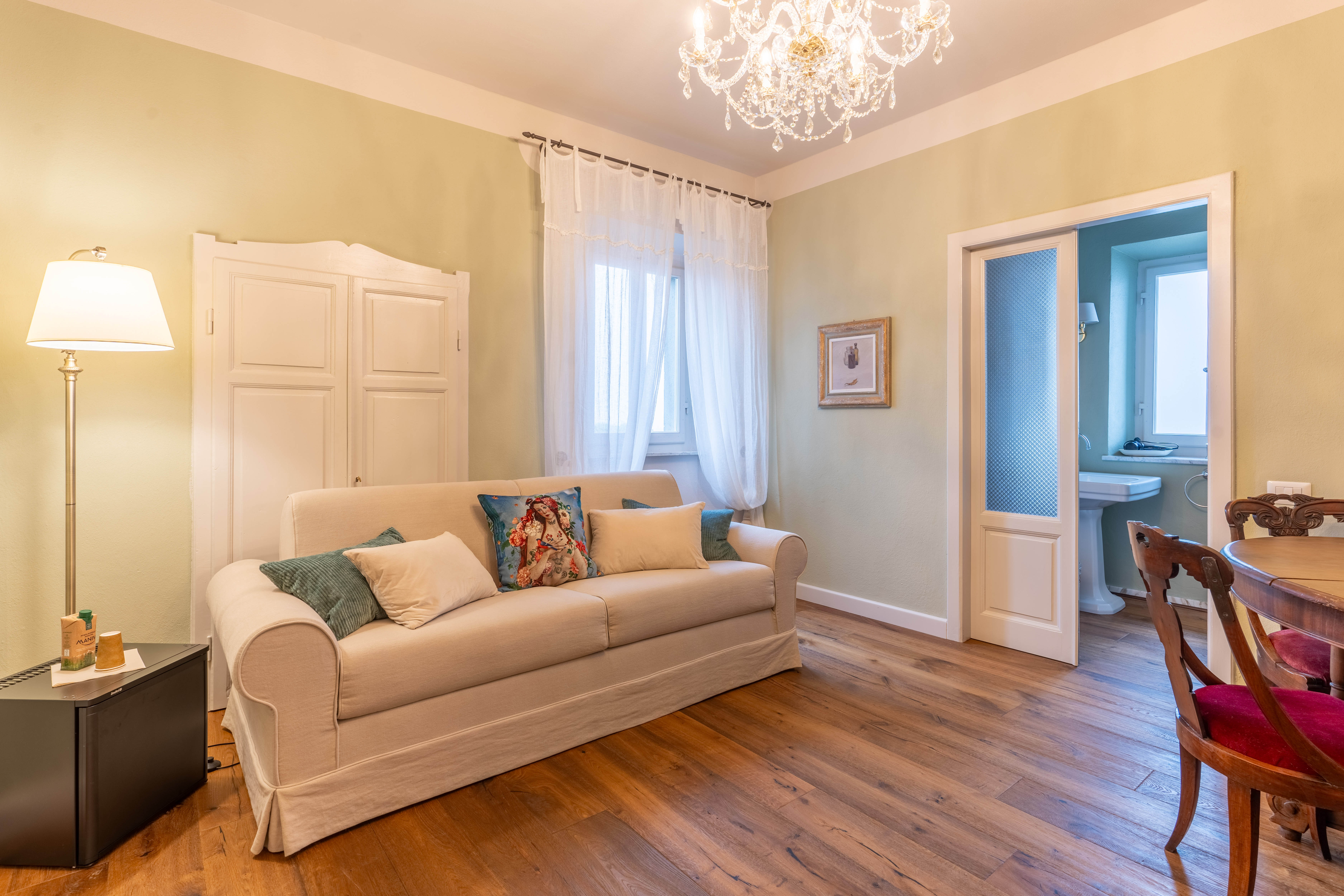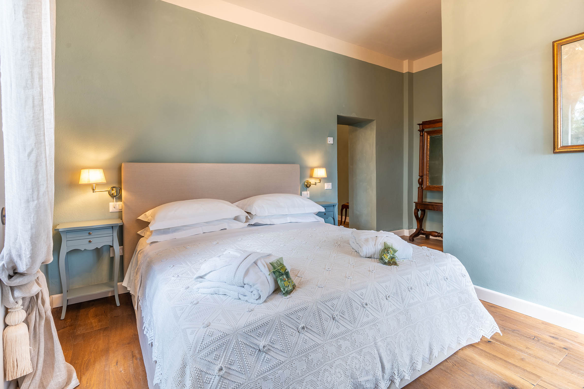 All rooms feature solid wood furnishings, terracotta or parquet floors, and original architectural details such as stone vaults and exposed wooden beams, creating a warm and inviting atmosphere. Complete with private bathrooms, TV, Wi-Fi, and heating, they ensure a comfortable stay in every season.