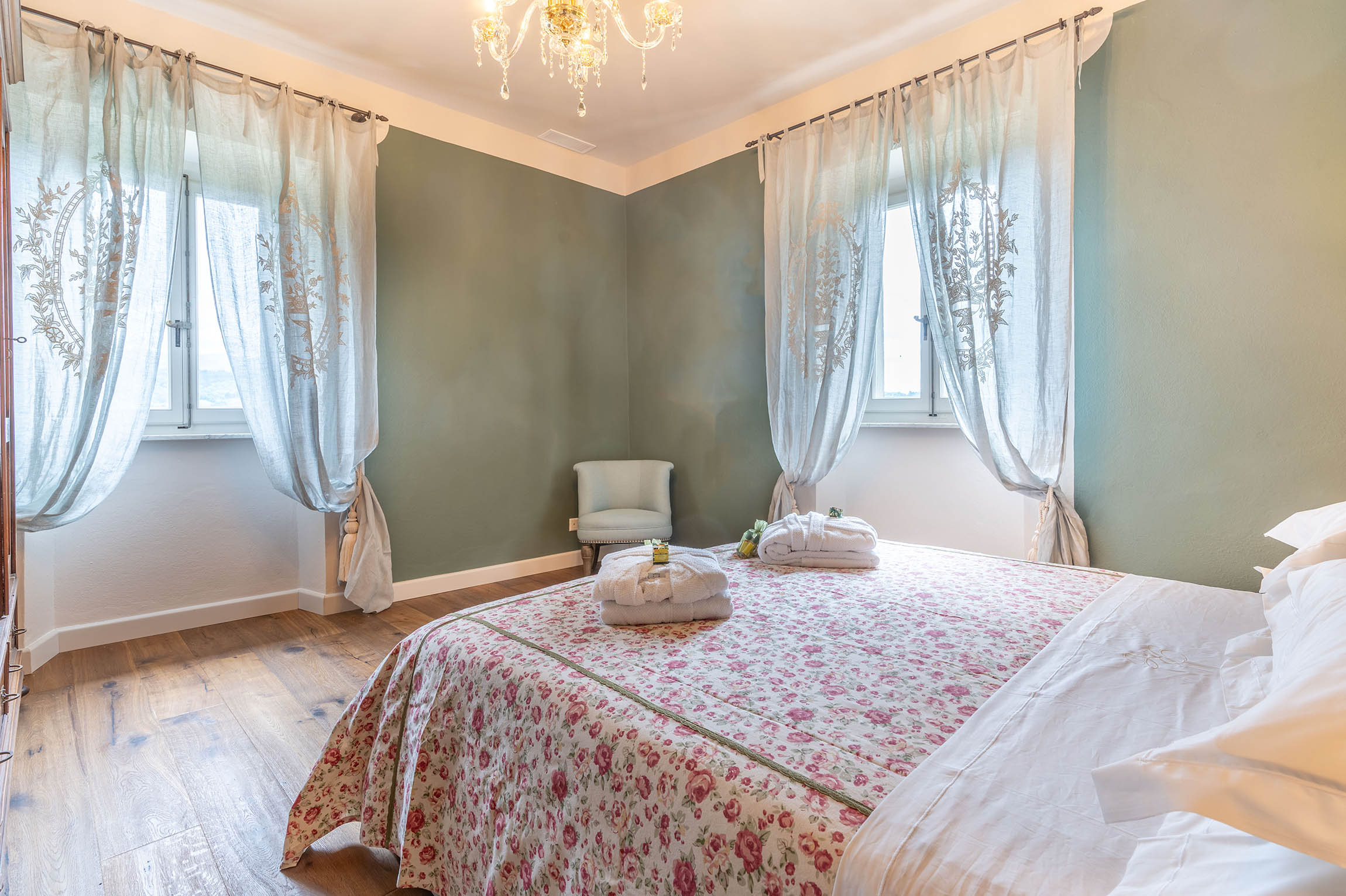 Rocca Bertani has been meticulously restored to host guests in seven exclusive rooms, each tastefully decorated and equipped with every comfort. The accommodations, spread between the medieval tower and the adjacent building, include: