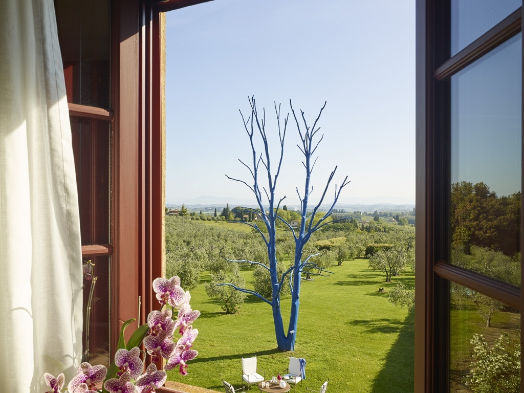 La Villa del Riccio is located in the heart of Chianti. From the windows it is possible to admire the Tuscan landscape, formed by green hills dotted with olive trees, flowering vineyards and centuries-old cypress trees. The meticulous and detailed restoration, with the aim of preserving as many of the original architectural elements, has led to recreating the ancient atmosphere of this noble house.