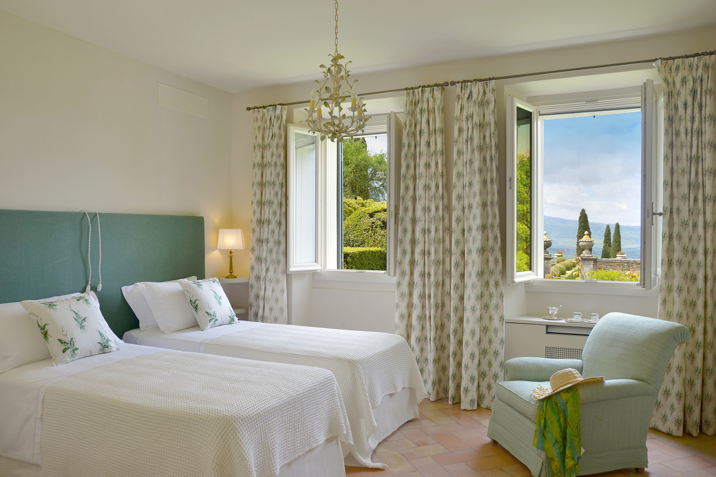 The Villa is built on three levels, following the slope of the hill, and is surrounded by the famous garden created by Iris Origo and the English architect Cecil Pinsent - a "labor of love" which lasted many years. The house has a charm of yesteryear, furnished with beautiful antiques, comfortable beds and many charming rooms for private moments and family reunions.