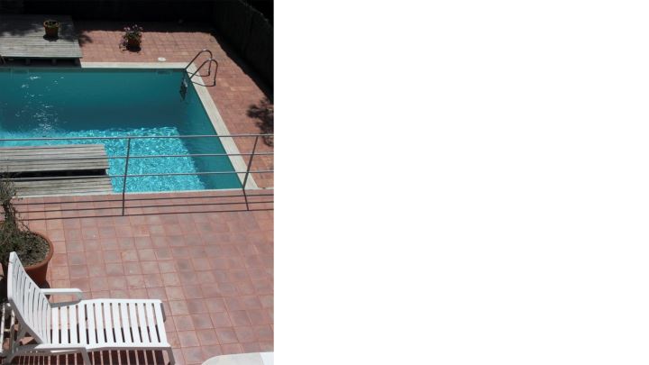 Independent residence (sleeps 6+1). On the ground floor there is a double bedroomn with view over the swimming pool, bathroom with bath, two rooms with two bunk beds and a bathroom with bath. On the first floor there is a lounge with dining room and a kitchen.