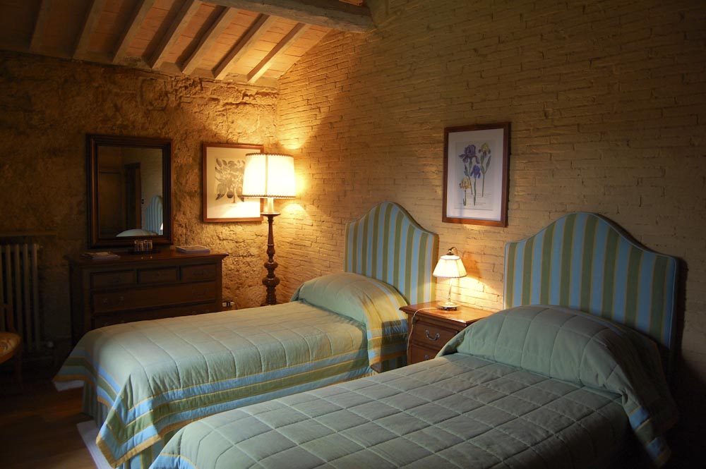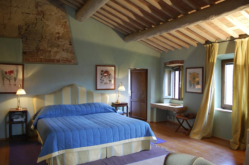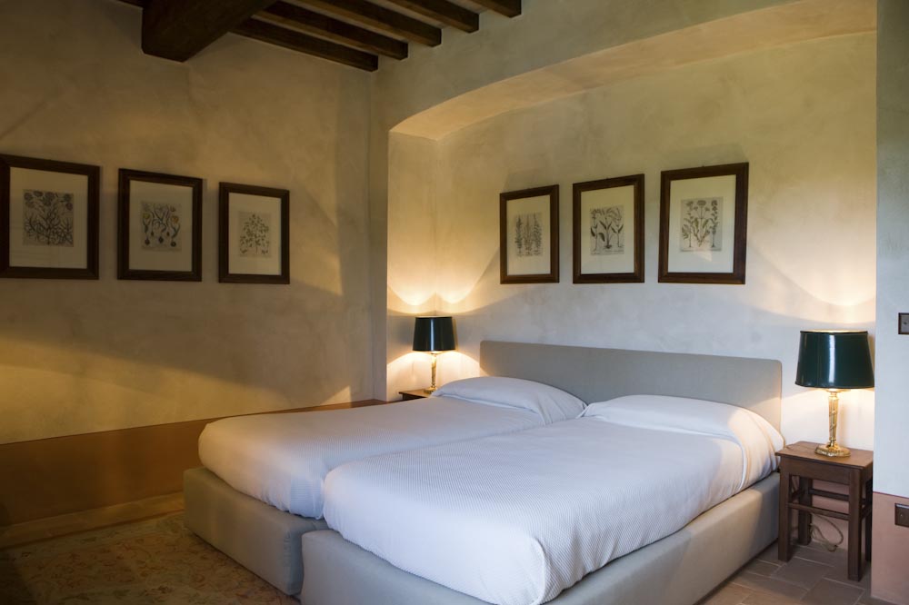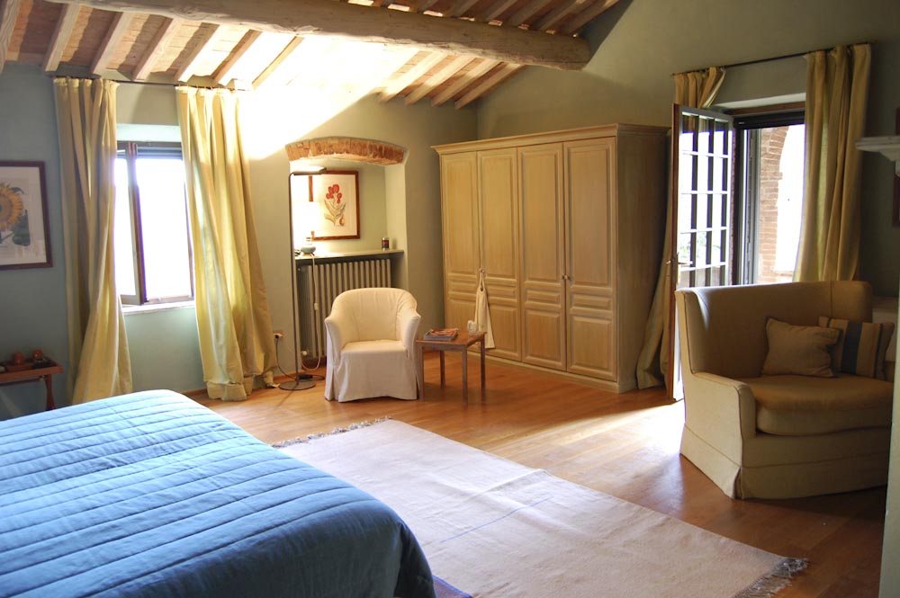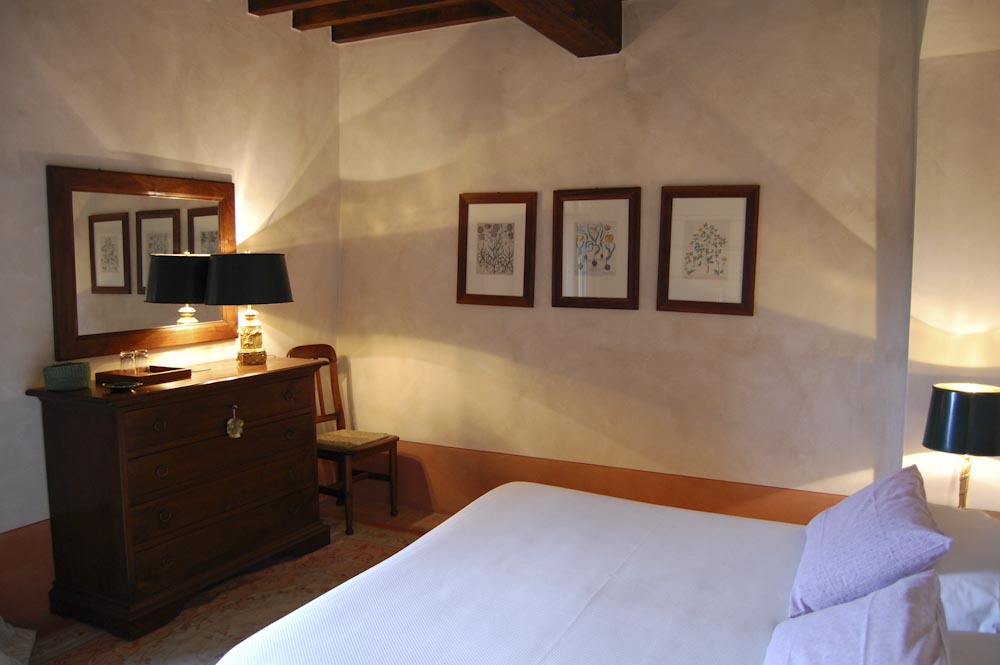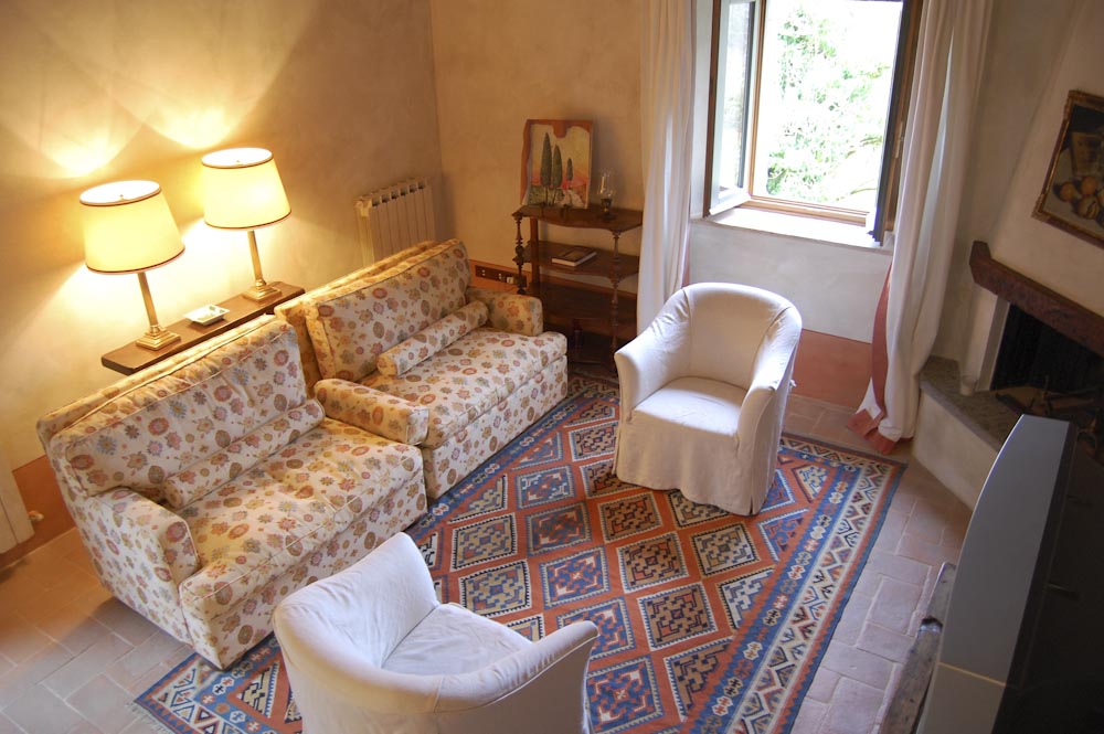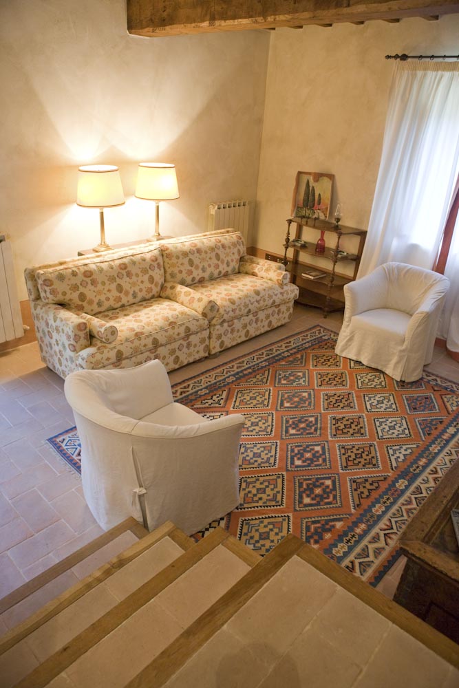 Main house 6 sleeps on the ground floor there are a large living room with fireplace and dining room both with access to the garden, equipped kitchen. On the first floor there are a living room with a loft with a single bed, a double bedroom with fireplace and en suite bathroom with bath and shower (the master bedroom is opened to a terrace with panoramic views and access to the garden), two double or twin rooms with shared bathroom with shower and bath.