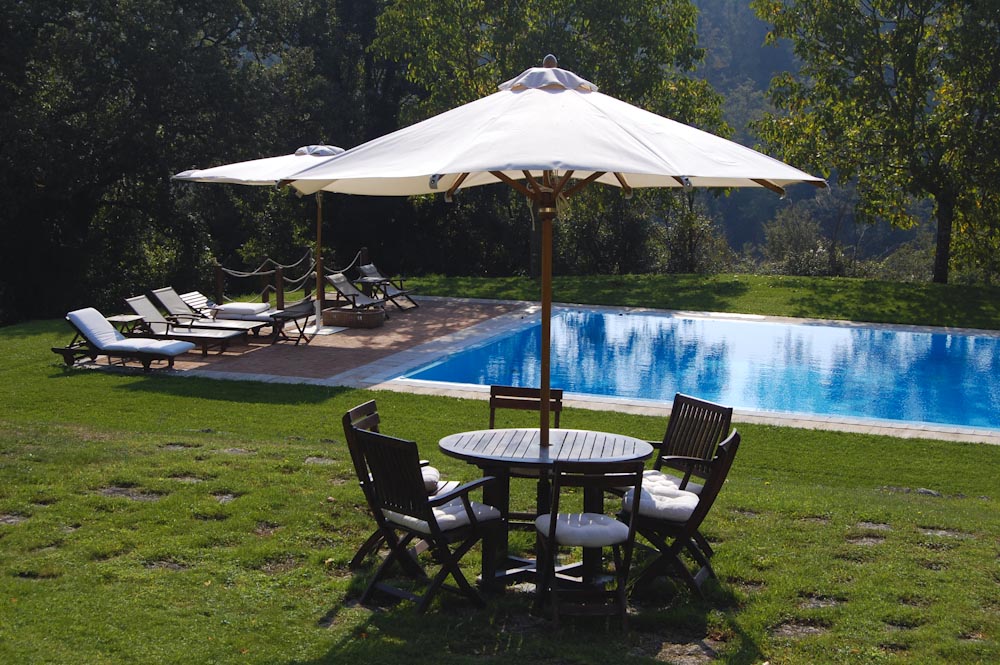 Swimming pool (m 7x14), green space, pergola for outdoor dining, private forest, air conditioning in the master bedroom, washer, dryer, dishwasher, satellite TV, wi-fi, stereo with CD player.