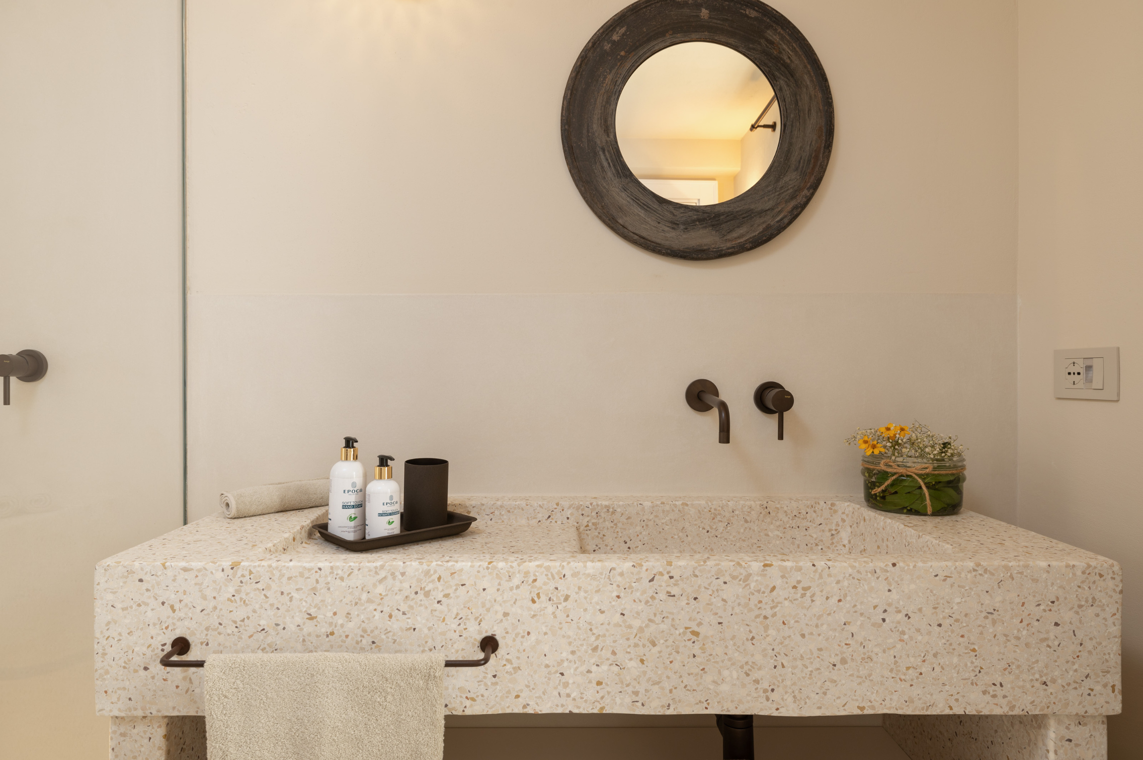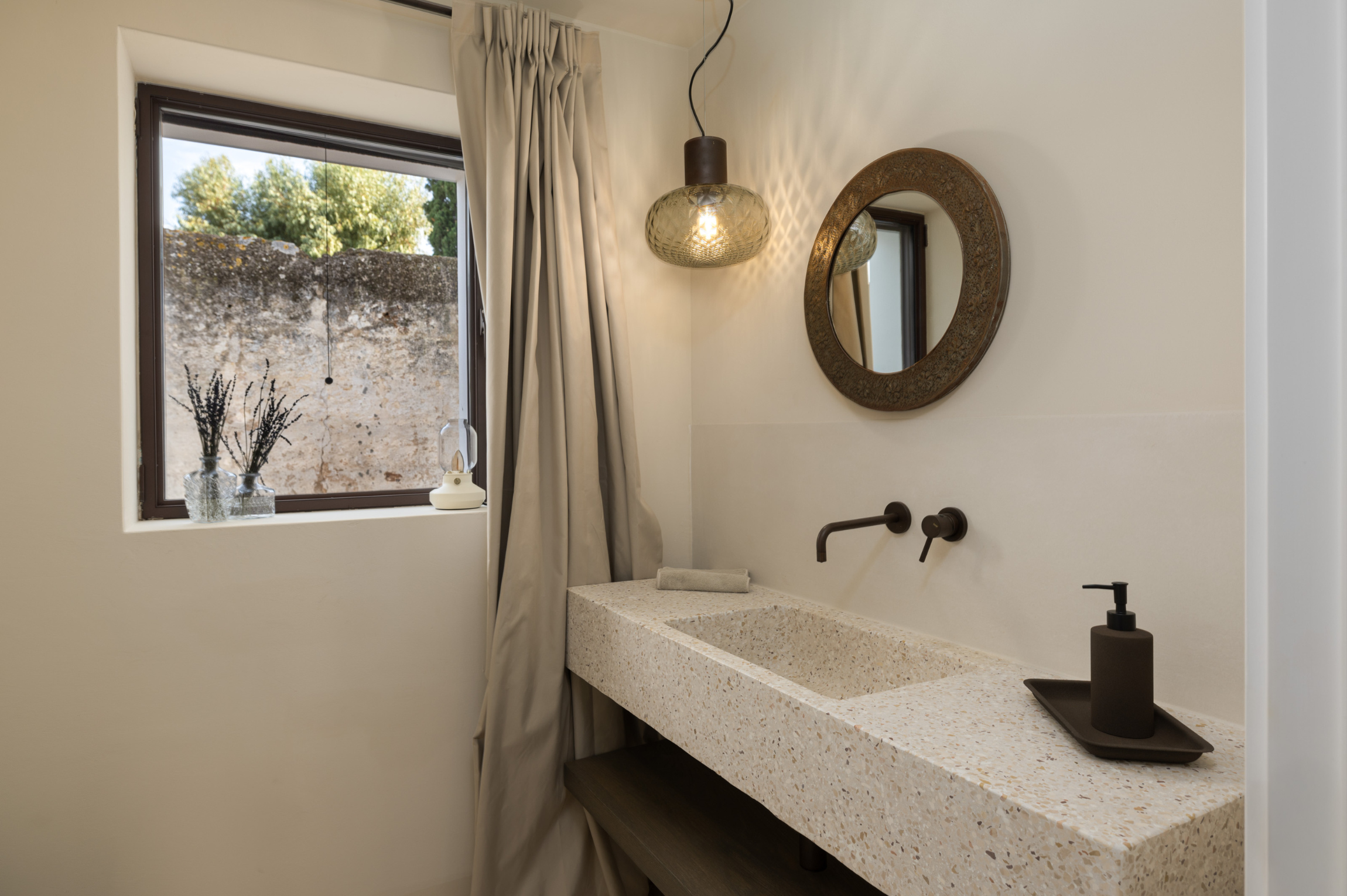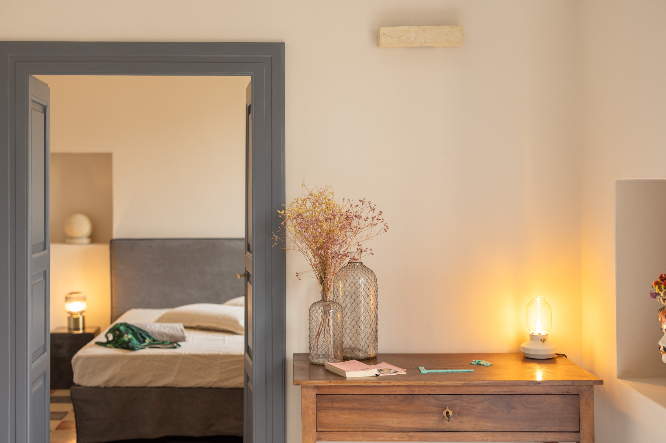 Villa Ostuni can accommodate up to 8 guests across four elegant double bedrooms, each with its own en-suite bathroom, distributed between the ground and first floors. All rooms reflect the refined taste and traditional style that defines the entire property. Upstairs, two double bedrooms feature a minimalist design, enhanced by traditional flooring and whitewashed wooden beams. The master bedroom boasts direct access to the outdoor hot tub—an ideal spot to start the day with panoramic views. The remaining two bedrooms are located on the ground floor and are distinguished by stunning vaulted ceilings, adding a sense of grandeur and space. All rooms are furnished with double beds and en-suite bathrooms, ensuring maximum privacy.