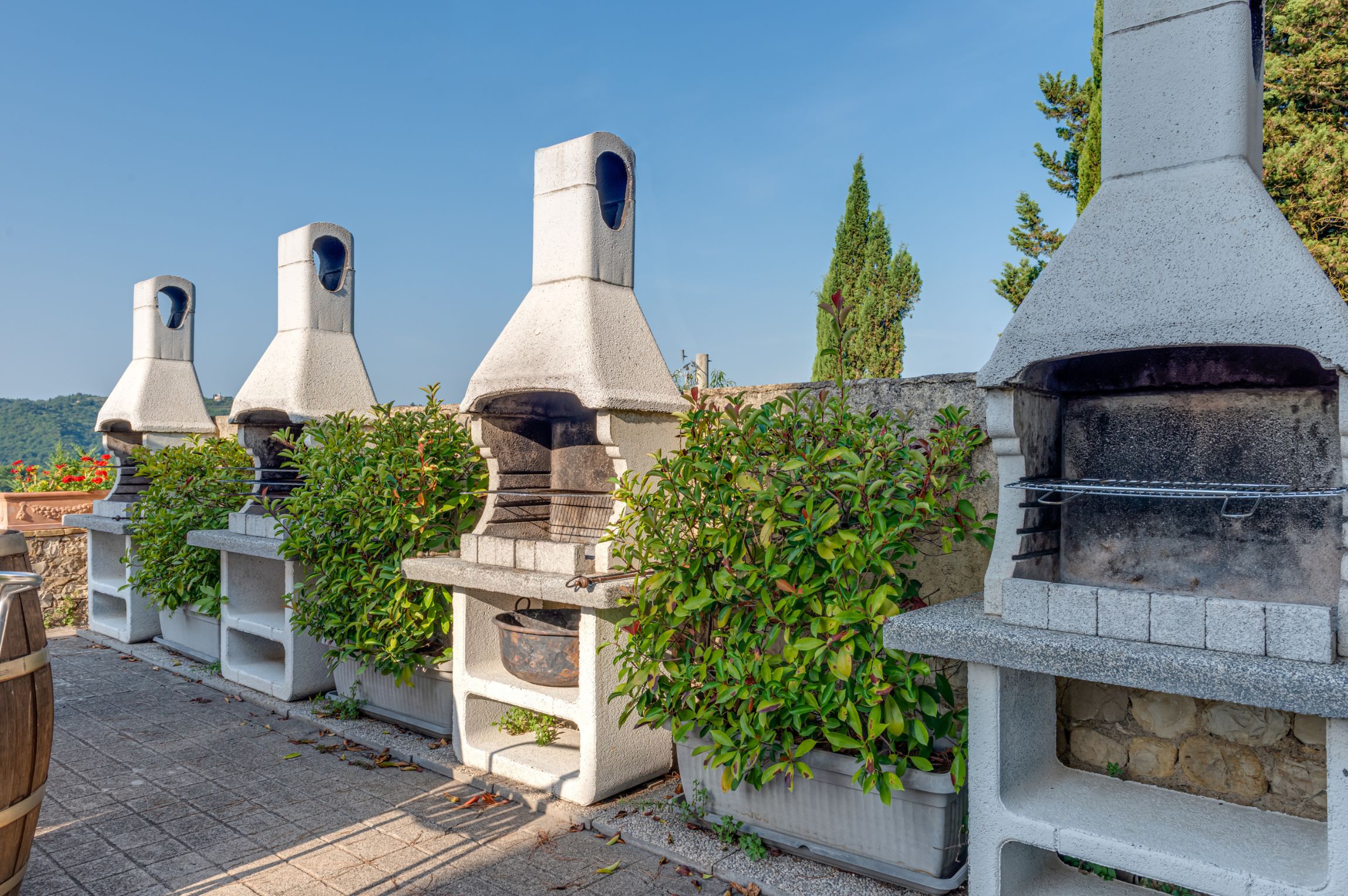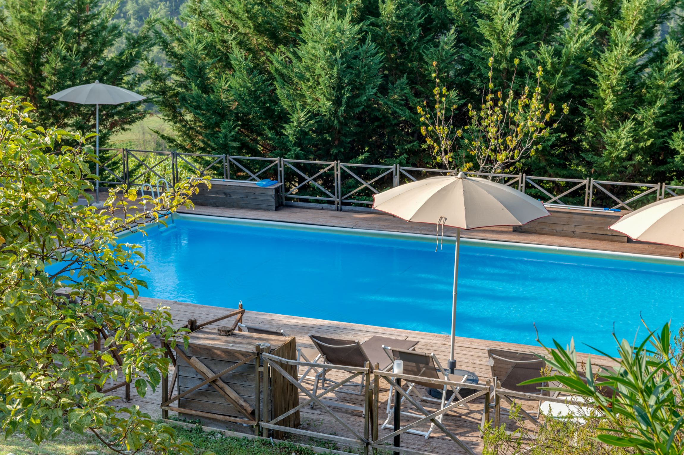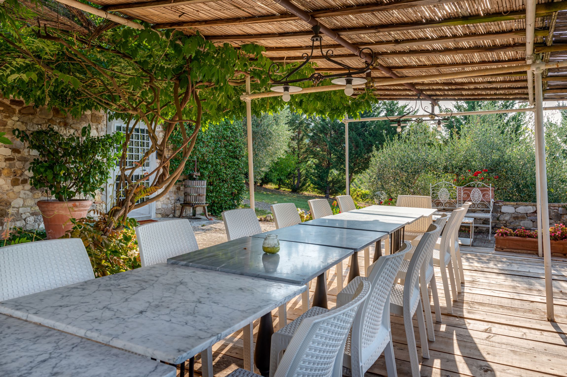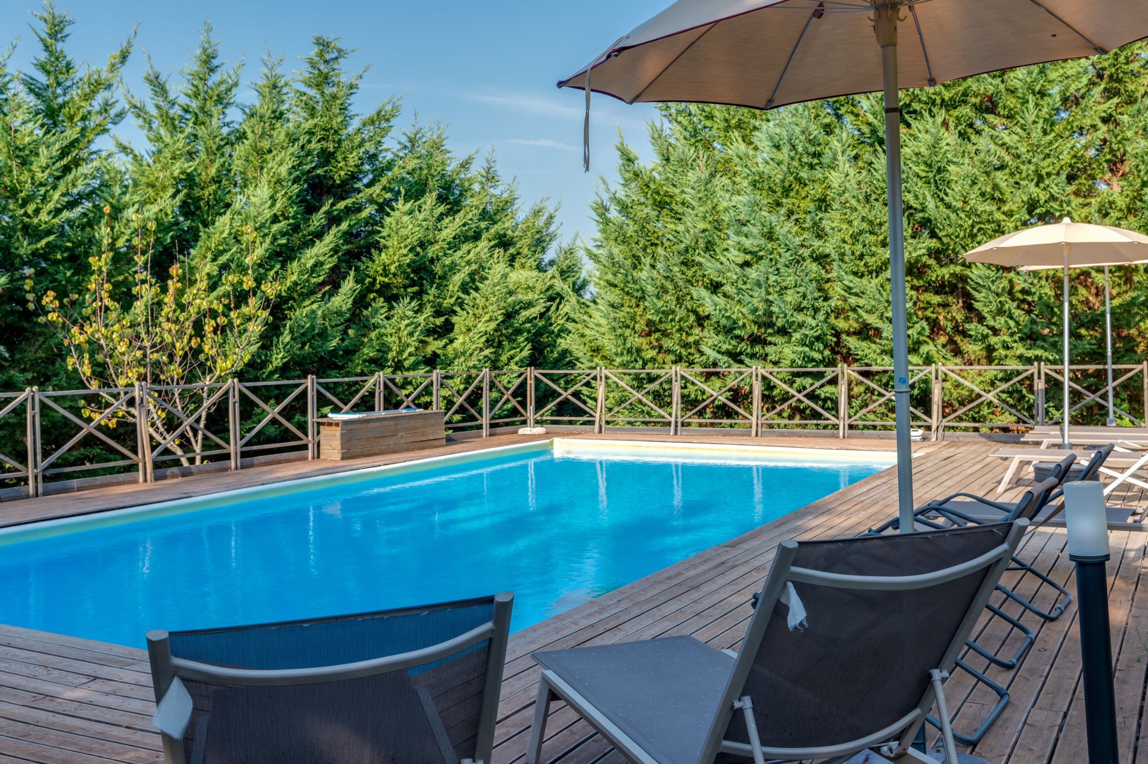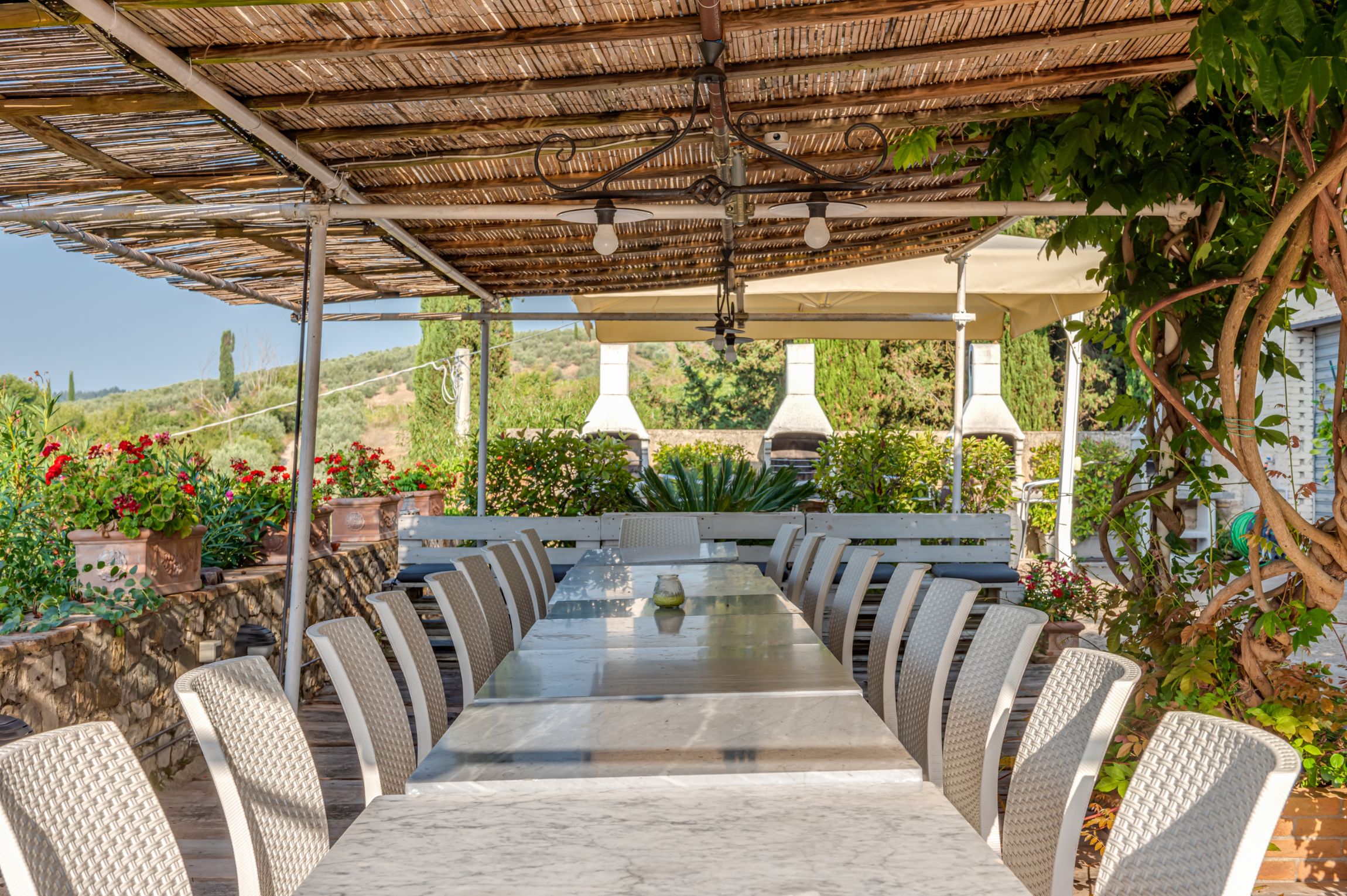 The outdoor spaces are designed for maximum relaxation: a beautifully maintained garden hosts a stunning swimming pool, perfect for cooling off on warm summer days, along with a solarium area equipped with comfortable loungers. A spacious panoramic terrace with a dining table invites guests to enjoy al fresco dinners, while the barbecue area is ideal for lively outdoor gatherings. An elegant shaded pergola and various lounge areas create perfect spots to sip an aperitif at sunset or unwind in the peaceful embrace of nature.