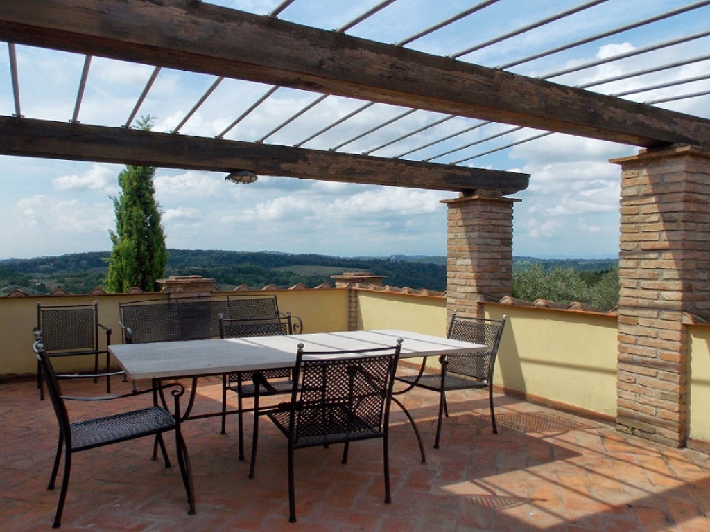 Villa Vignola is a wonderful completely renovated farmhouse, located in the countryside of Montaione, a medieval village in the Florentine province. The villa is located on top of a hill, in a dominant position overlooking the Tuscan countryside, the cultivated fields and the small woods that surround it. The property has a beautiful private fenced garden, characterized by paved areas, interspersed with lawn and flowers.