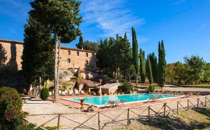 Imponente edificio risalente al XVIII secolo, magistralmente collocato nel suggestivo paesaggio delle Crete, a mezz’ora da Siena. Attenta la ristrutturazione e straordinaria la collocazione con vista a 360 gradi su di una terra mutevole e suggestiva. Percorrendo il viale di cipressi, si accede alla grande piscina con idromassaggio ed una suggestiva vasca termale dove l'acqua raggiunge la temperatura di 30 gradi con proprietà benefiche per la pelle. Arredamento molto buono.