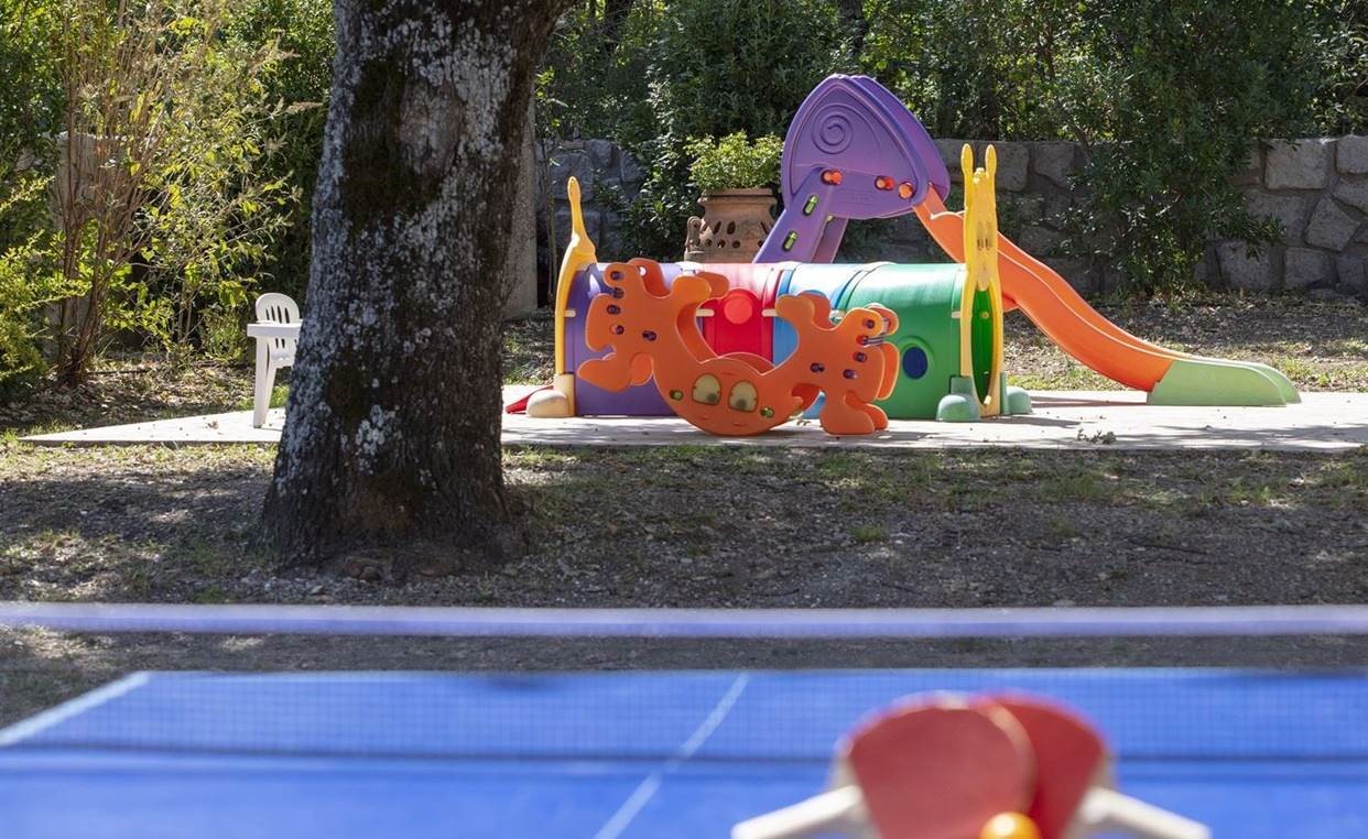 Fa parte della villa un terreno di 11000m recintato con all'interno un'area giardino con quercie centenarie, tavoli e sedie all'ombra degli alberi, parco giochi sia adulti-ping pong, calciobalilla, tam-tam - che baby - miniscivolo, mini tunnel, scrivania a dondolo.