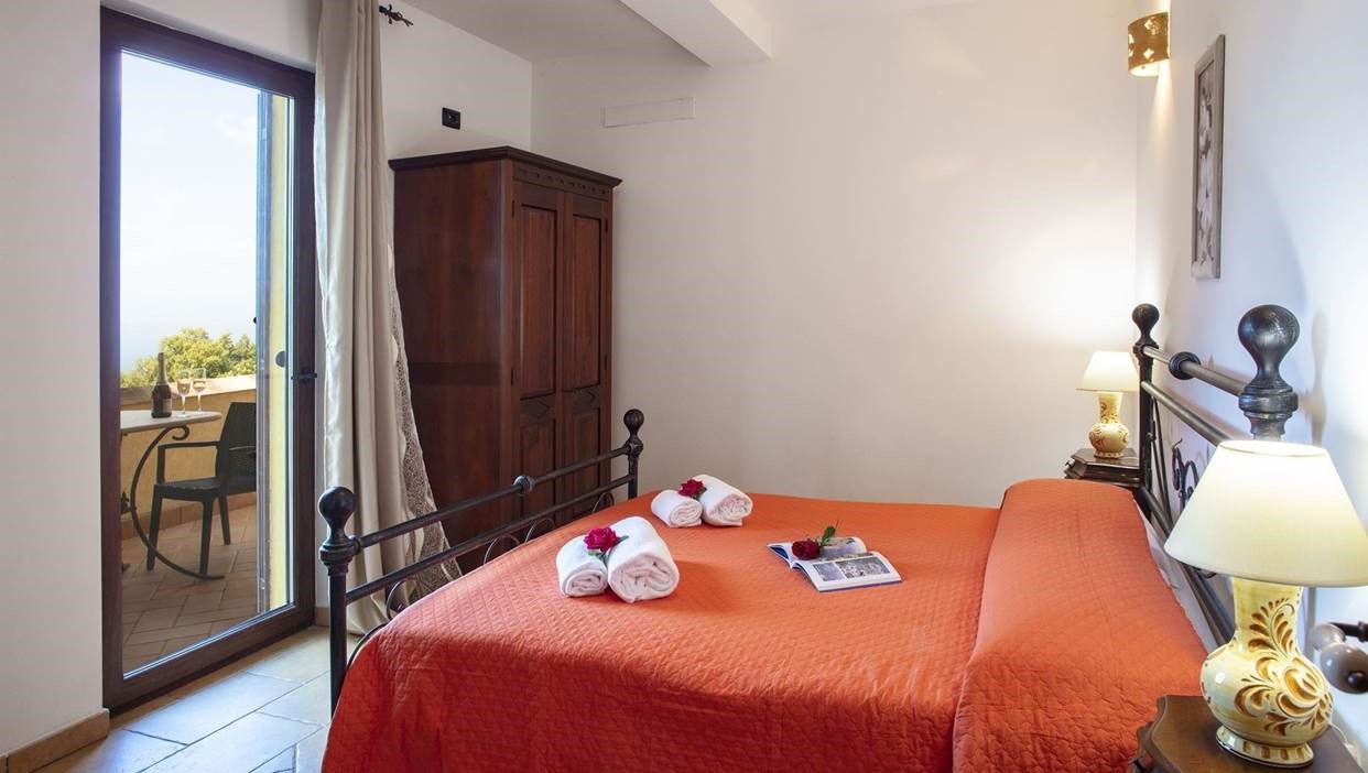 CALLA BIANCA è situato al secondo piano ( 2 camere da letto matrimoniali arredate con letti in legno, 2 bagni entrambe con doccia, sala da pranzo, angolo cottura arredato-piatti pentole posate etc.- completo di elettrodomestici-piano cottura a gas, lavello, frigorifero, forno, tostapane, lavastoviglie, bollitore, macchina caffè espresso, moka; wifi gratuito, aria condizionata, riscaldamento autonomo, tv satellitare, terrazzo arredato con tavolo,sedie e barbecue ed al piano superiore un solarium esclusivo di circa 50 m2 arredato con tavolo, sedie e sdraie, visuale mozzafiato a 360 gradi)