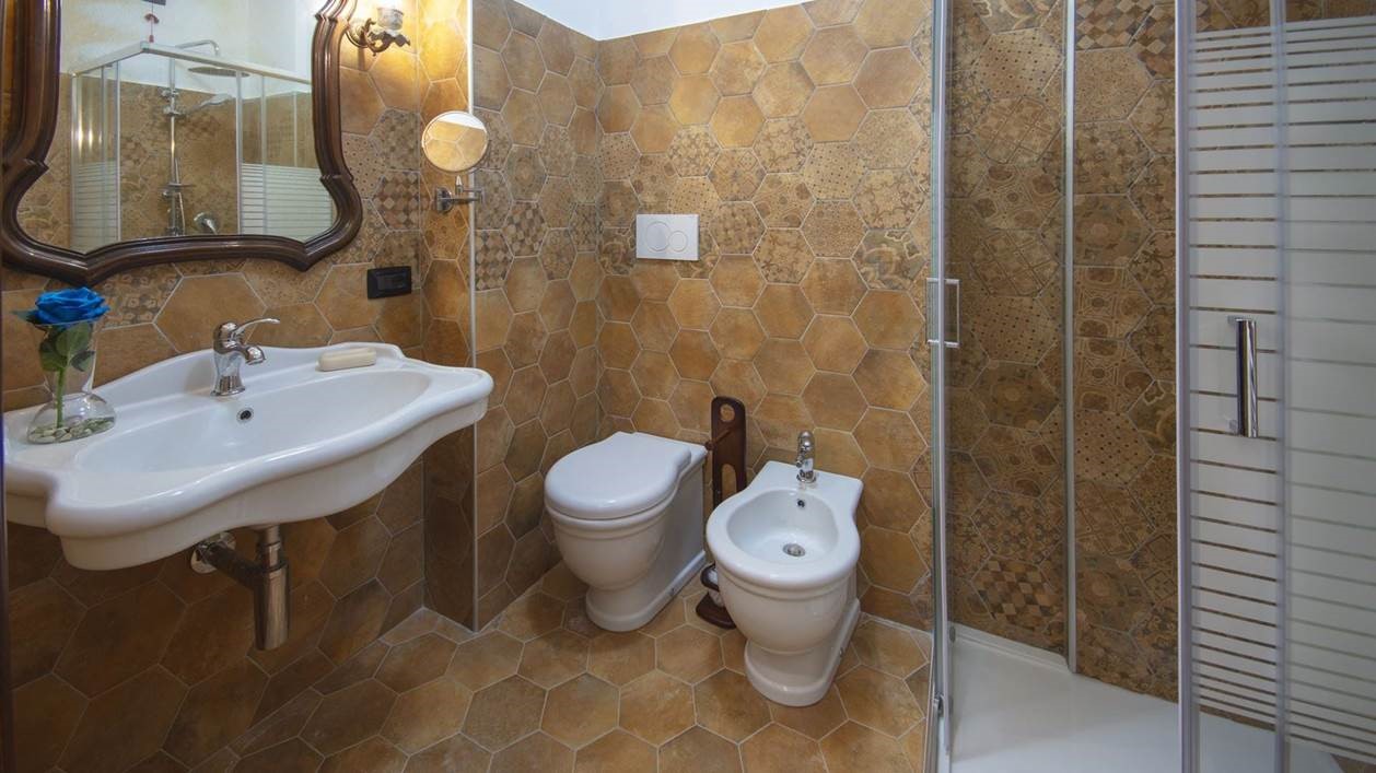 CALLA BLU (2 camere da letto matrimoniali arredate con letti e armadi in legno, 2 bagni entrambe con doccia, sala da pranzo con caminetto, cucina arredata-piatti, pentole, posate, etc.- completa di elettrodomestici-piano cottura a gas, lavello, frigorifero, frizer, forno, tostapane, lavastoviglie, bollitore, macchina caffè espresso, moka; wifi gratuito, aria condizionata, riscaldamento autonomo, tv satellitare, piazzetta arredata con tavolo e sedie)