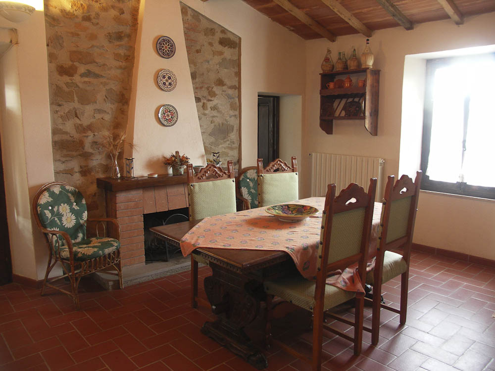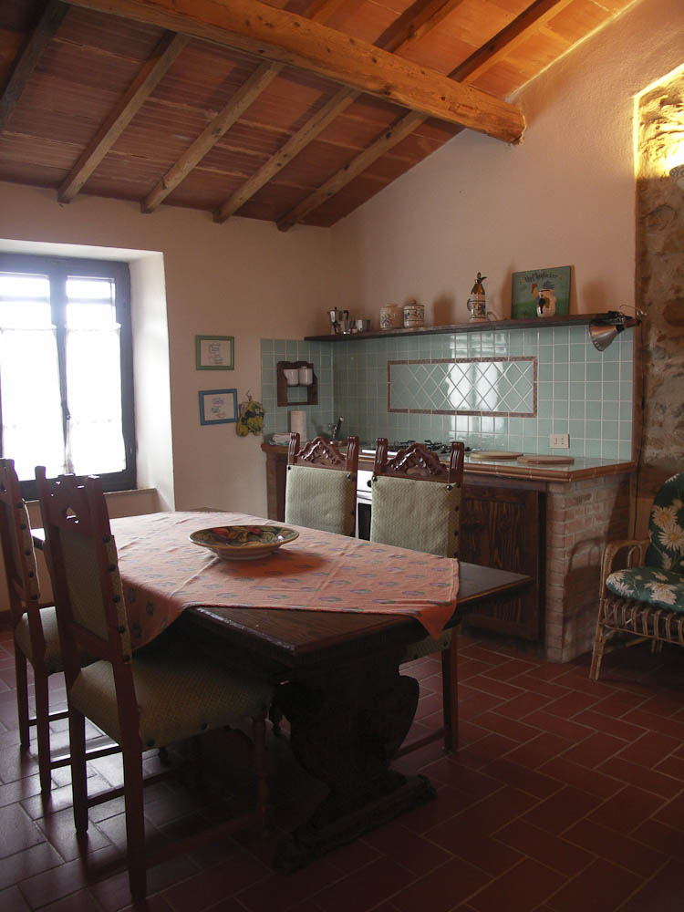 Il Sorbo da 4 posti letto, al piano terra del casale e composto da un soggiorno con angolo cottura con camino e televisione, una camera matrimoniale, una camera doppia, un bagno con doccia.
