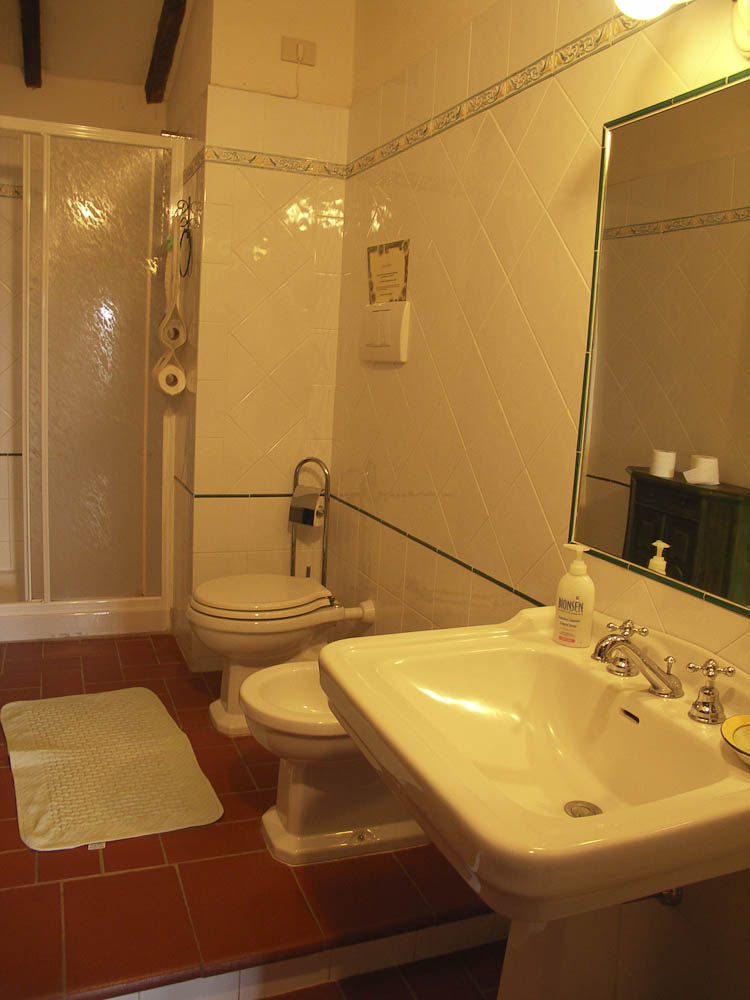 Il Pero da 7 posti letto, al primo piano del casale e composto da soggiorno con angolo cottura con camino e televisione, una camera matrimoniale con servizio interno, una camera matrimoniale/doppia con bagno privato con doccia, una camera tripla, un bagno con doccia. L'appartamento ha anche una terrazza.