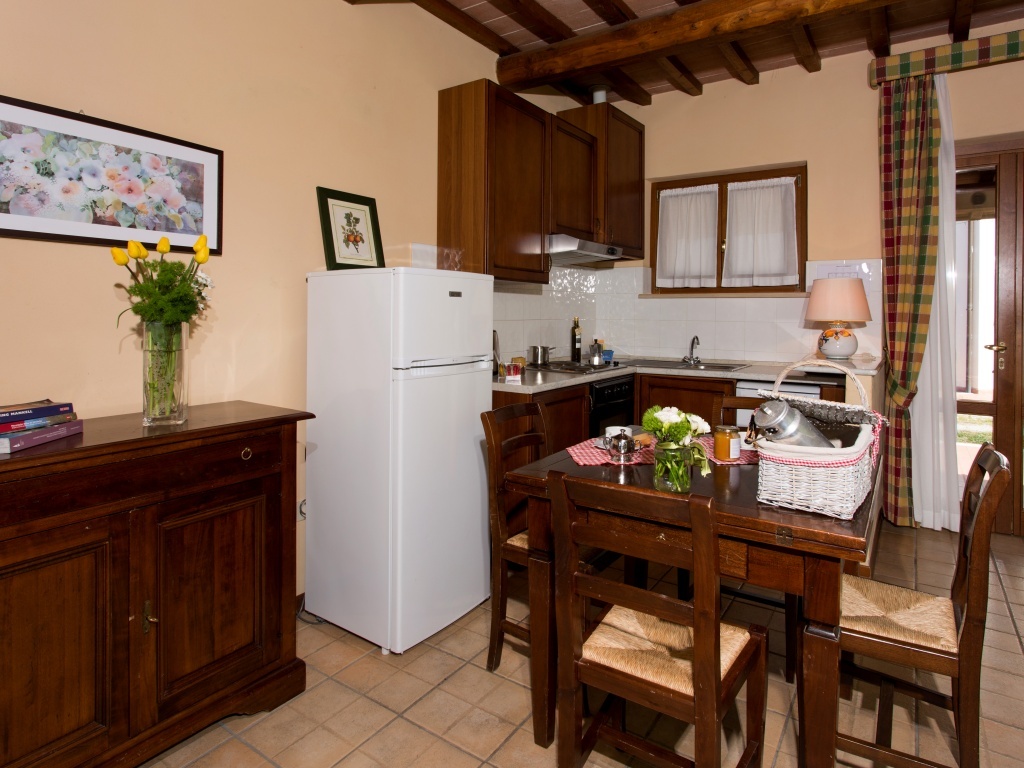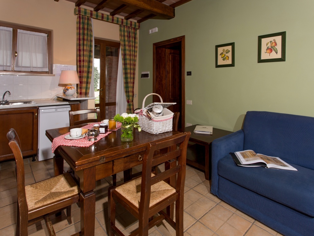 Il ristorante della struttura è stato ricavato all’interno dell’antica scuderia del borgo rurale, recentemente ristrutturata. Circondato dal verde, ha il tipico “sapore” della campagna umbra e toscana. Si compone di un'ampia sala interna, piena di charme, e di un porticato esterno coperto.