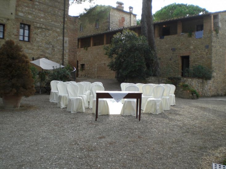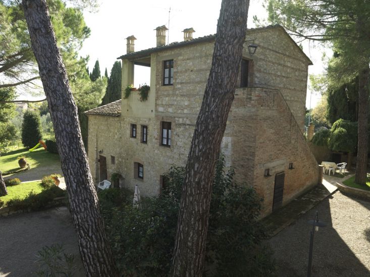Borgo Santinovo è un antico borgo medievale che mantiene tutto il fascino delle tipiche strutture architettoniche dell'epoca, con un lungo viale di accesso in cipressi toscani e circondato da olivi e vigneti del Chianti. Il parco si estende tra le abitazioni comprendendo una incantevole piscina (m. 11x8 aperta da fine maggio al 30 Settembre), un solarium (10x10 m.) e prati verdi ombreggiati da gelsi, pini, querce e cipressi. L'intero borgo, circondato da vigneti e uliveti, è situato su un altipiano nel cuore del Chianti Colli Senesi. A piano terra, vicino alla piscina e al parco, si trova un ampio salone con mura in pietra, un grande caminetto e antiche travi in legno, ideale per ospitare feste e matrimoni.