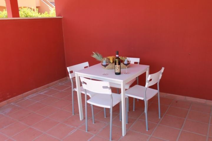 Bilocale al primo piano con veranda da 2+2 posti letto composto da soggiorno con angolo cottura e divano letto matrimoniale, una camera matrimoniale, un bagno con box doccia, veranda coperta completa di tavolo e sedie da giardino.