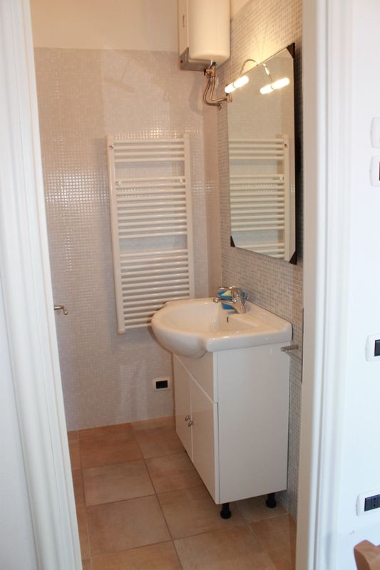 Monolocale con piccolo terrazzo da 2+1 posti letto composto da un soggiorno con angolo cottura e divano, una zona con letto matrimoniale, un bagno (non provvisto di bidet) con antibagno e box doccia, terrazzino completo di tavolo e sedie da giardino.