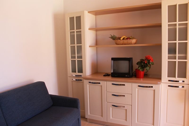 Trilocale al piano terra da 4+2 posti letto composto da un soggiorno con angolo cottura e divano letto matrimoniale, una camera matrimoniale, una camera con due letti singoli, unibili, un bagno con box doccia, ampio spazio esterno completo di tavolo e sedie da giardino.