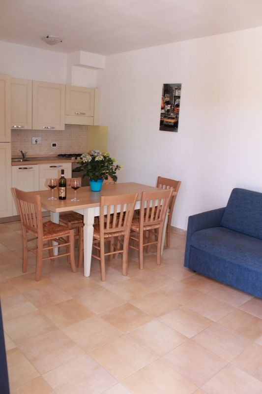 Trilocale al piano terra da 4+2 posti letto composto da un soggiorno con angolo cottura e divano letto matrimoniale, una camera matrimoniale, una camera con due letti singoli, unibili, un bagno con box doccia, ampio spazio esterno completo di tavolo e sedie da giardino.