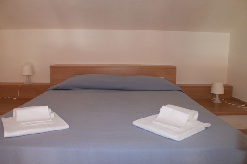 Trilocale con mansarda al primo piano da 3+4 posti letto soggiorno con angolo cottura e divano letto matrimoniale, mansarda con letto matrimoniale, una camera con letto matrimoniale ed un letto singolo, un bagno con box doccia, loggia coperta completa di tavolo e sedie da giardino.