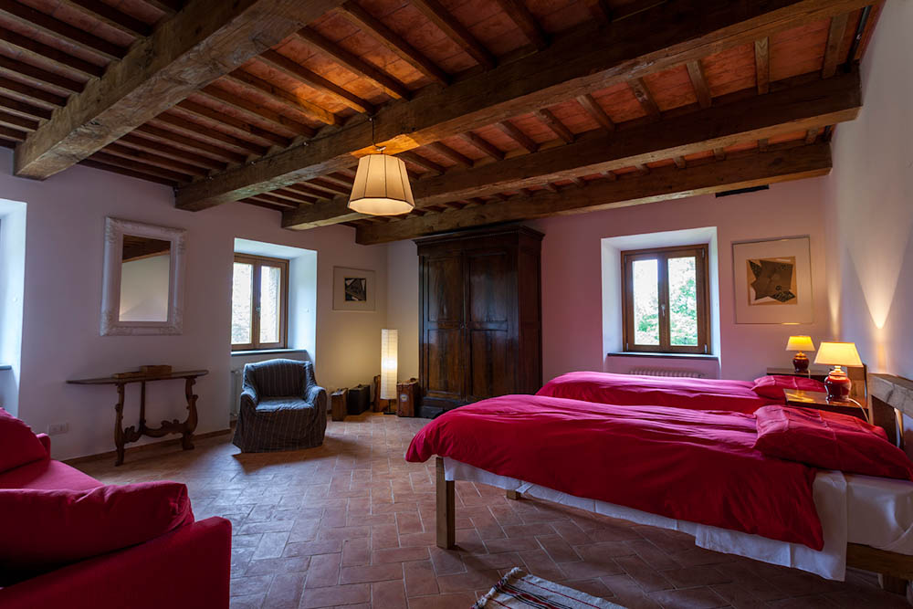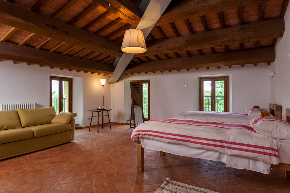 Ai 2 piani superiori, 6 spaziose camere da letto doppie (o matrimoniali), tre delle quali hanno un divano letto matrimoniale (riservati esclusivamente a bambini). Una camera ha il bagno interno, per le altre 5 ci sono 3 bagni a disposizione ai piani.