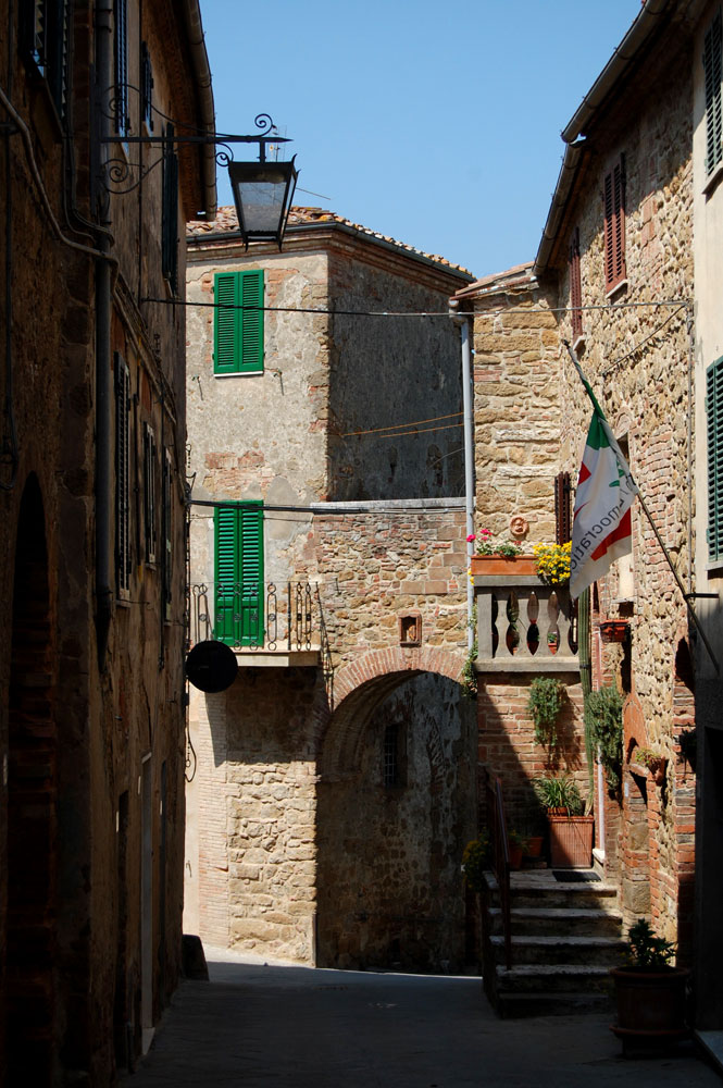 Appartamento da 6 posti letto, al primo piano soggiorno con caminetto, una cucina, una camera matrimoniale con piccolo terrazzino con vista sulla campagna circostante, un bagno con vasca. Al secondo piano due camere matrimoniali, un bagno con doccia, ampia terrazza attrezzata con vista sul centro storico.