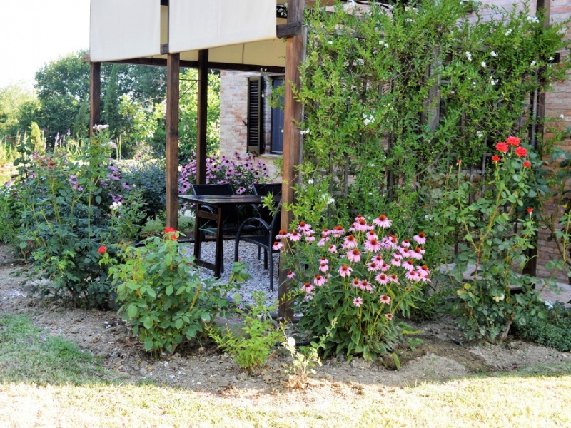 Il Casale è suddiviso in due parti, una delle quali abitata dai proprietari. La parte destinata ai clienti è dotata della totale privacy, uso del giardino e della piscina oltre che di ingresso indipendente.