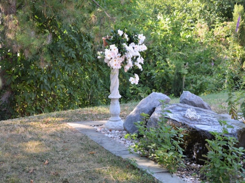 Piscina naturale, giardino recintato, animali ammessi, spazio verde attrezzato, tettoia coperta con sedie e tavoli da esterno, cucina attrezzata (frigorifero, forno, congelatore), lavatrice, asciugatrice, libreria.