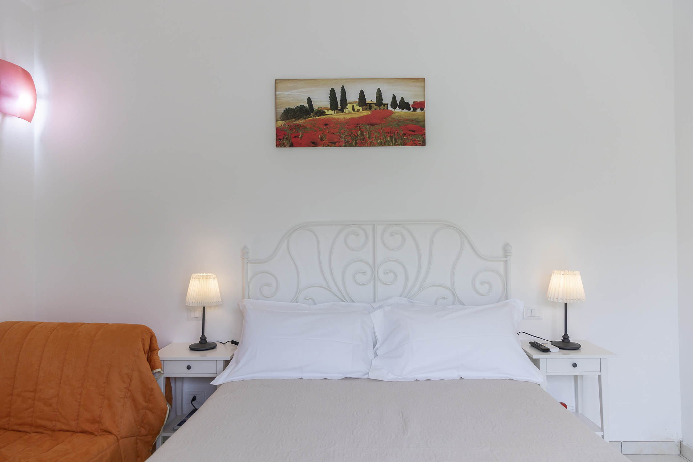 Tre camere, situate al piano superiore, vi accolgono con una balconata panoramica che si affaccia sulle campagne circostanti e sulle montagne, regalando un risveglio da sogno. Ogni camera è dotata di bagno privato con doccia, TV, Wi-Fi e aria condizionata, per garantire il massimo comfort.