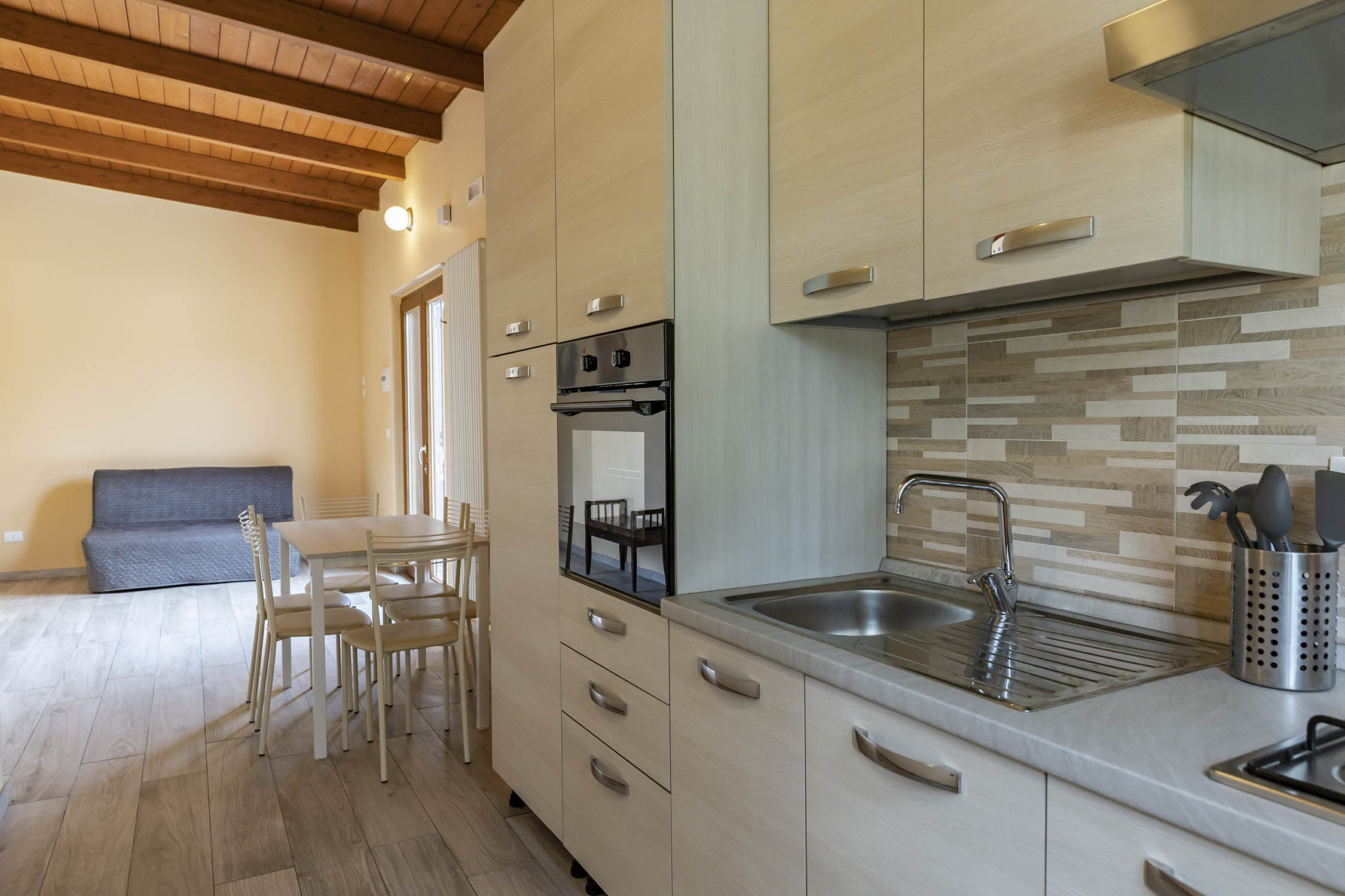 Per chi cerca maggiore autonomia, un appartamento al piano terra, a pochi metri dalla struttura principale, offre un ingresso-soggiorno, una cucina attrezzata, un bagno e due camere matrimoniali. Completo di TV, Wi-Fi e aria condizionata, è ideale per famiglie o piccoli gruppi.
