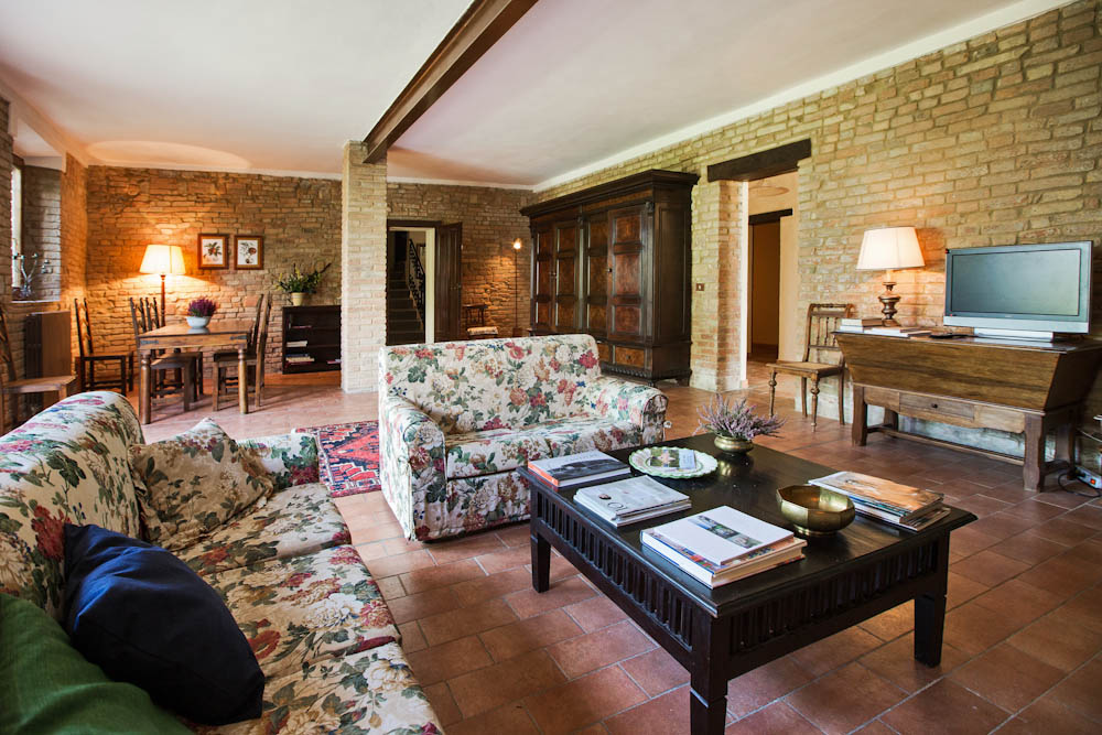 La Cascina è dotata di un ampio loggiato sul quale si affacciano un ampio salotto con camino, la cucina e due camere, mentre le altre cinque camere sono collocate al primo piano. La Cascina dispone di 5 bagni. La piscina è stata realizzata tra il casale e l’antico forno, in una posizione protetta e soleggiata. Un’elegante scalinata curva consente di immergersi con comodità, mentre un prendisole in mattoni antichi completa lo spazio verso il giardino.