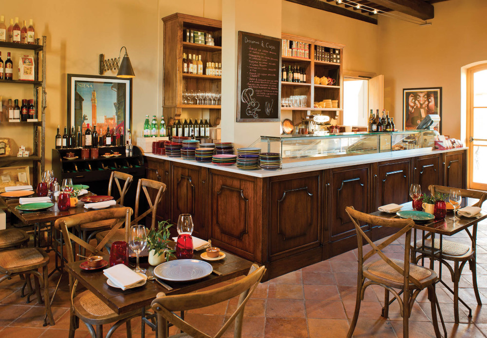 - Ristorante Tosca con terrazza esterna. È l’amalgama perfetta di influenze rustiche e moderne che si riflettono anche nel menu. Durante la stagione di caccia ricca varietà di carni di cinghiale, cervo, fagiani, lepri e conigli.