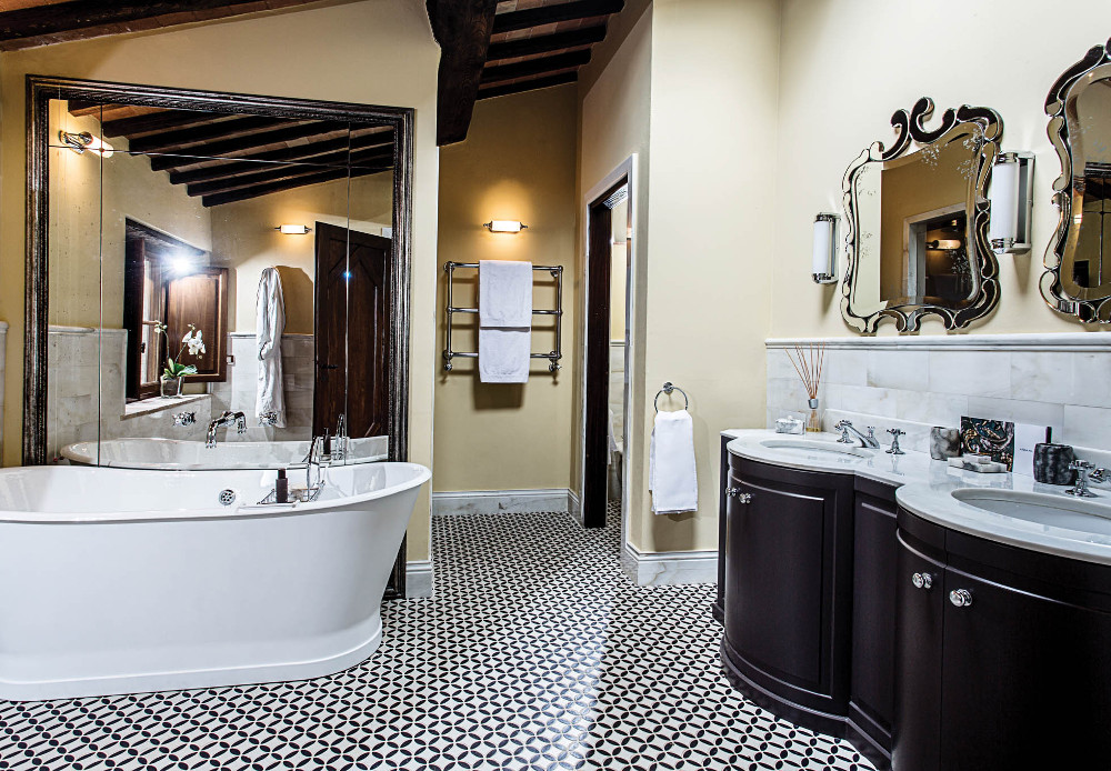 Le Suites One Bedroom Classica sono state realizzate in stile toscano, caratterizzate da muri in pietra a vista che regalano un tocco di autenticità e semplicità a queste eleganti suite, i rilassanti colori terracotta, blu e verde si amalgamano con le vibranti sfumature delle stoffe italiane, con gli armadietti e i mobili lavorati a mano e gli esclusivi accessori di origine locale. I bagni, non da meno, sono rilassanti e lussuosi ambienti in marmo di Carrara con pavimento in mosaico.