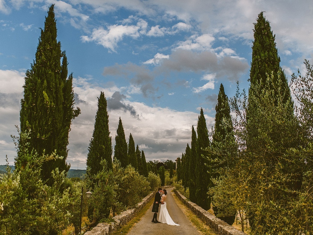 L’antico splendore vive ancora oggi nei suoi saloni, nelle sue segrete e nel suo magnifico giardino, che si affaccia sulla campagna senese. Dettagli che regalano al ricevimento di nozze un’atmosfera magica quasi fiabesca.